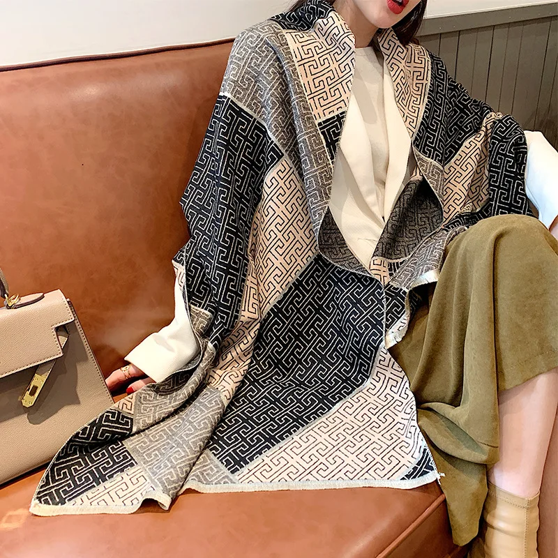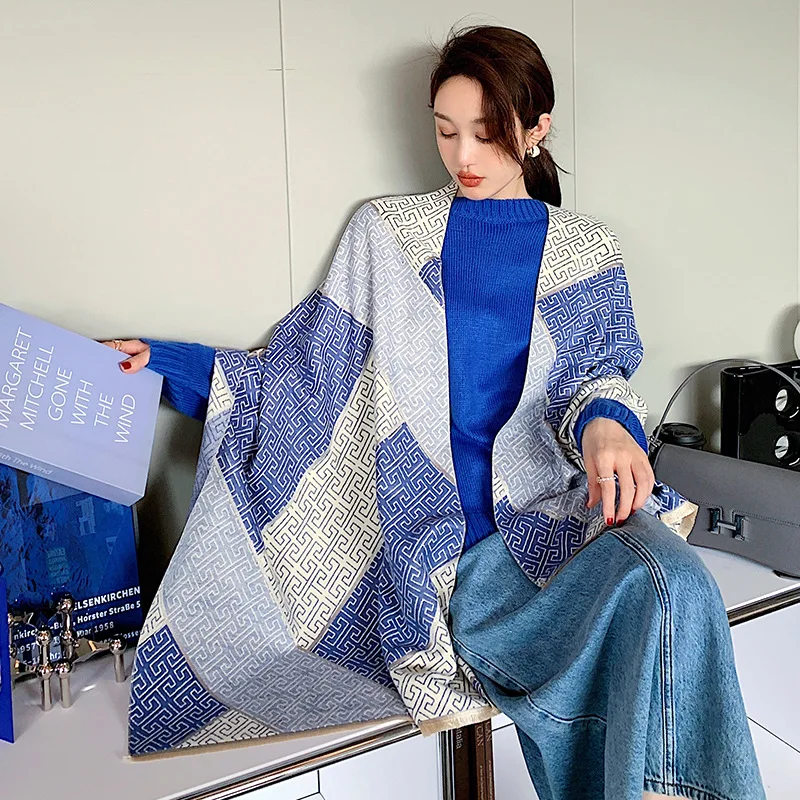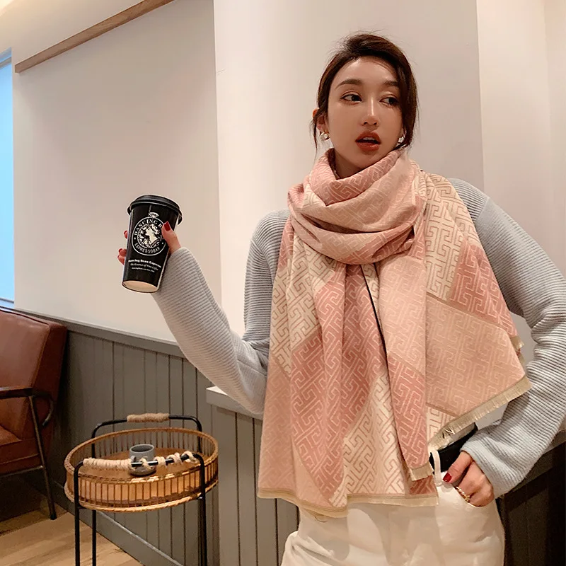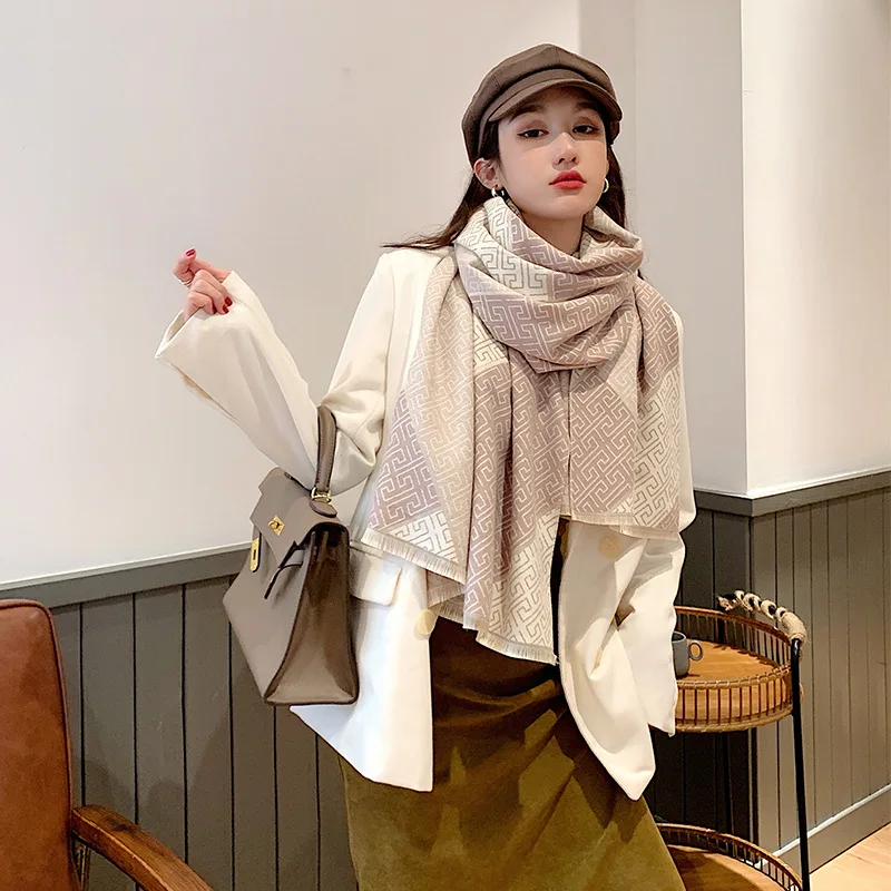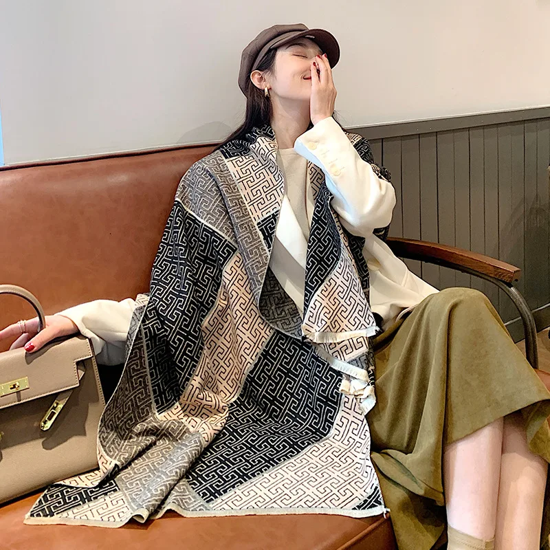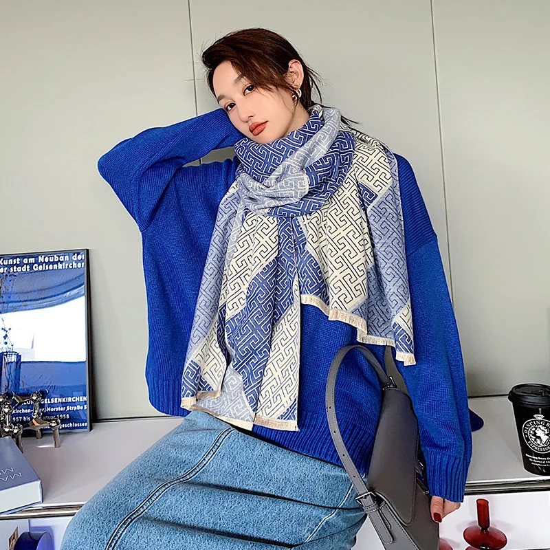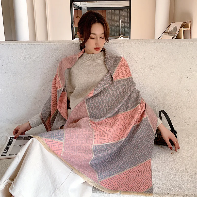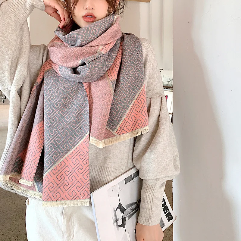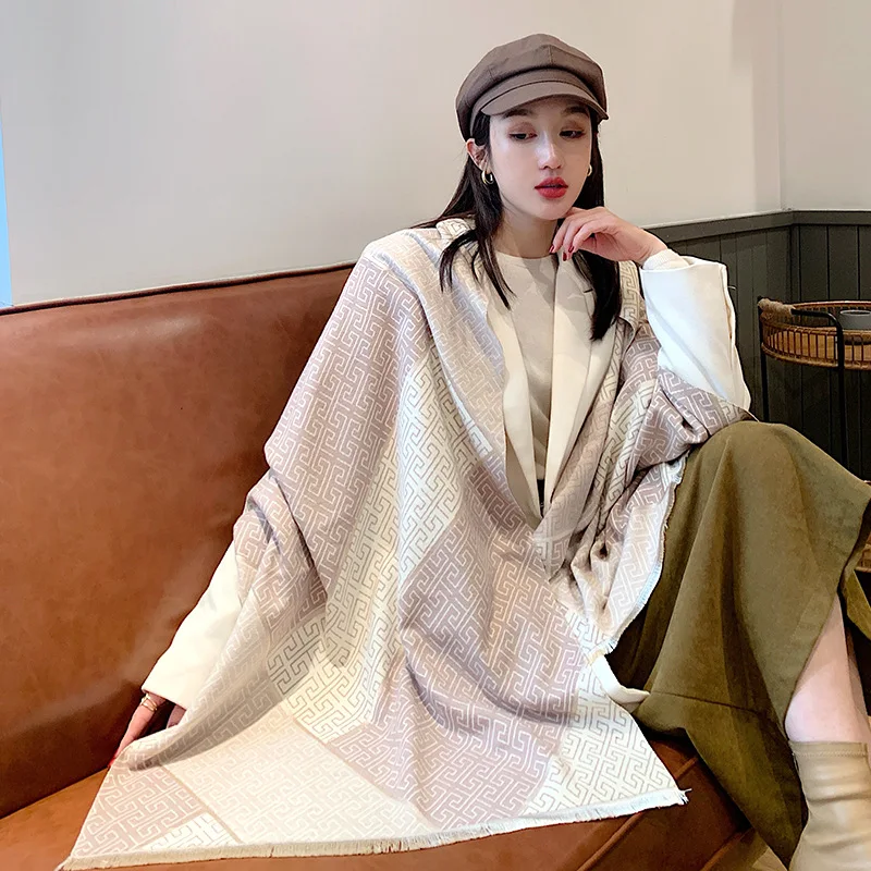 Шарф KOI LEAPING, зимний, женский, двухсторонний, теплый, кашемировый