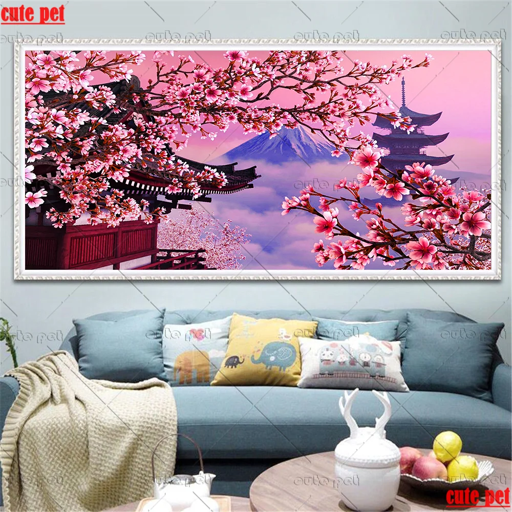 Алмазная живопись Mt Fuji, Япония, новинка, алмазная 5d Вышивка крестиком, полная выкладка, квадратные, круглые, сделай сам, облака, Сакура, домашний декор, большой подарок