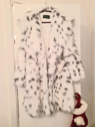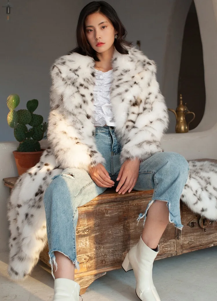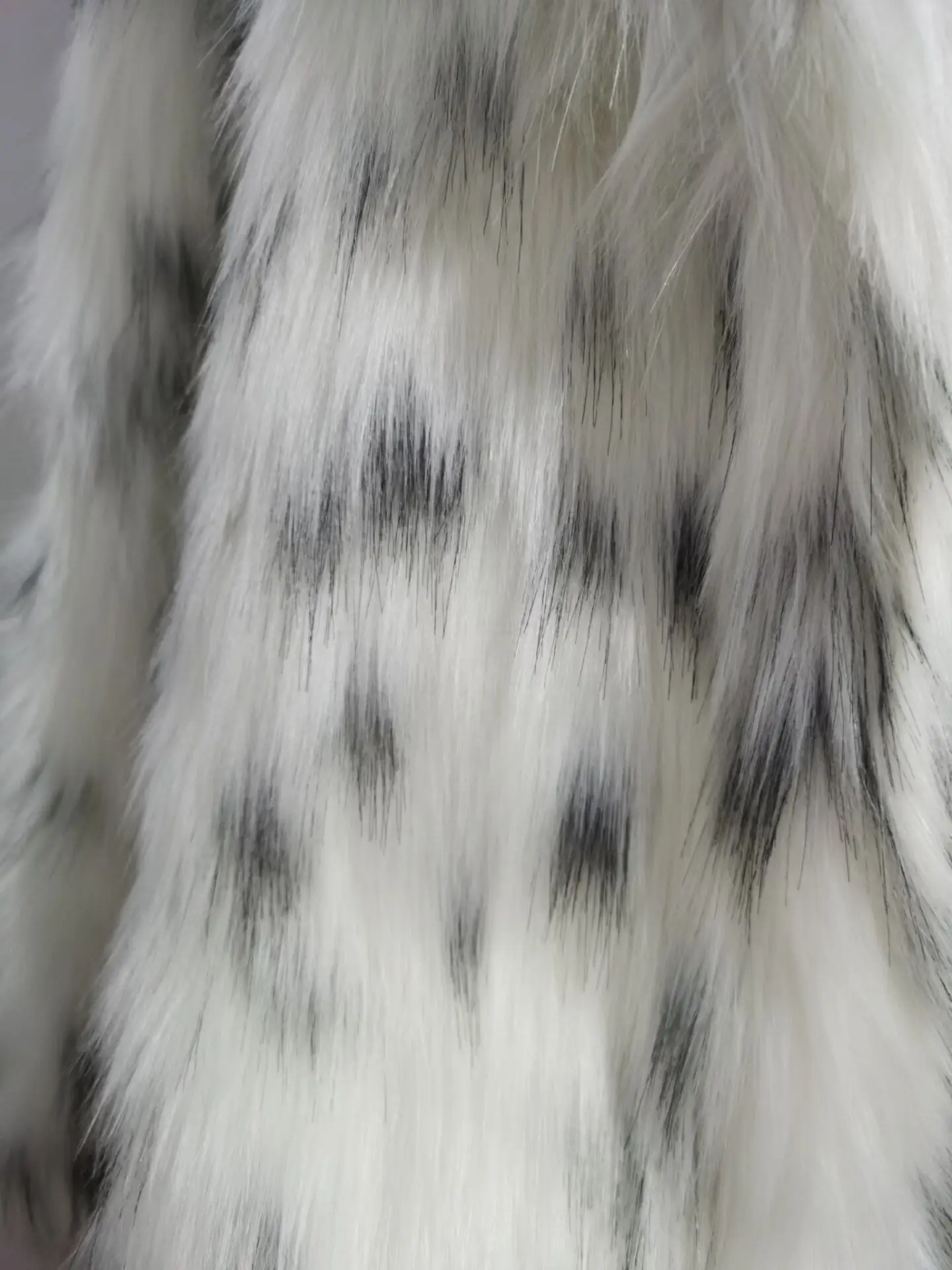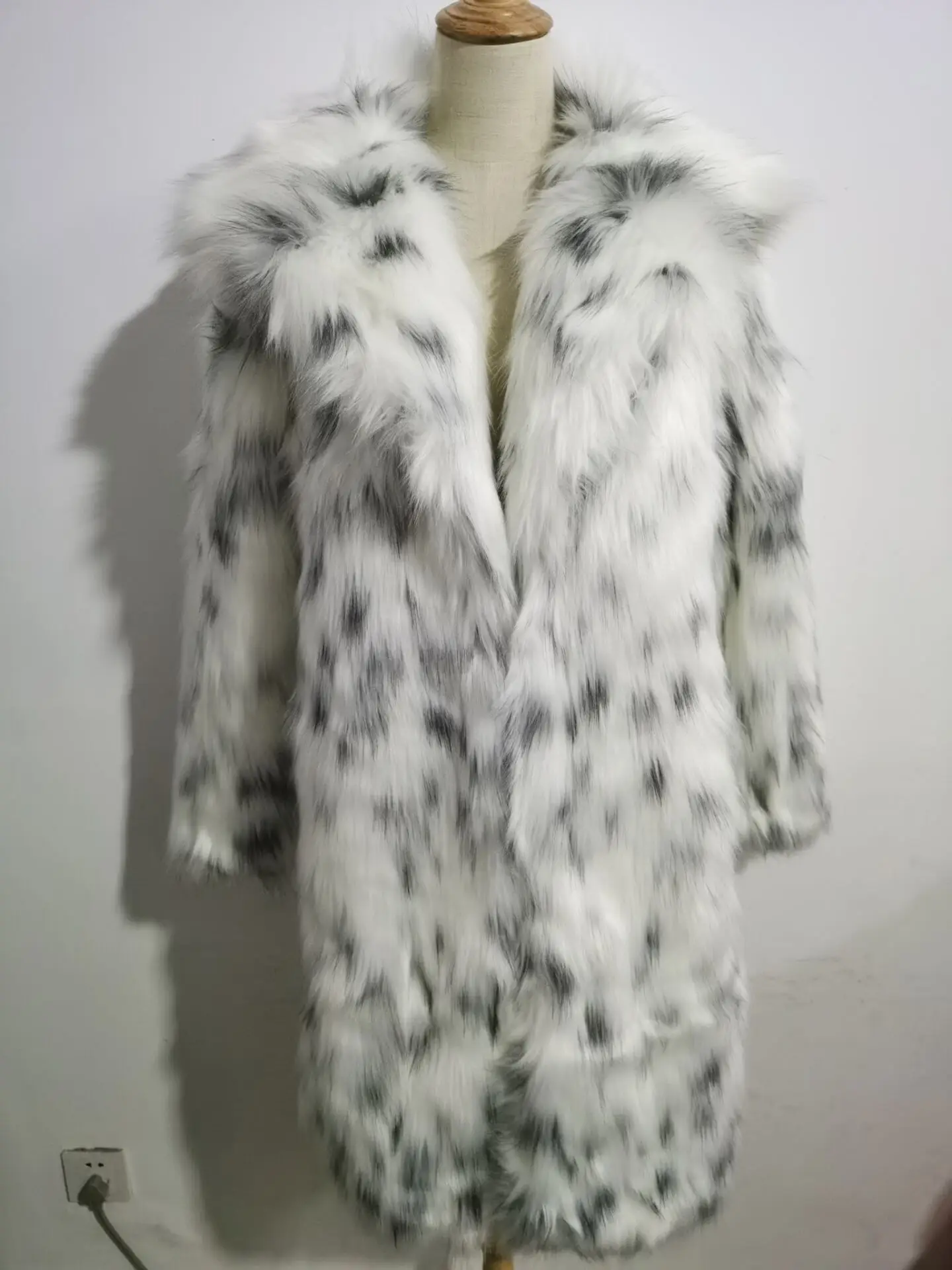 Женское меховое пальто до колен, белое, с ворсом, из искусственного лисьего меха, с леопардовым принтом, с длинным рукавом, зимняя верхняя одежда