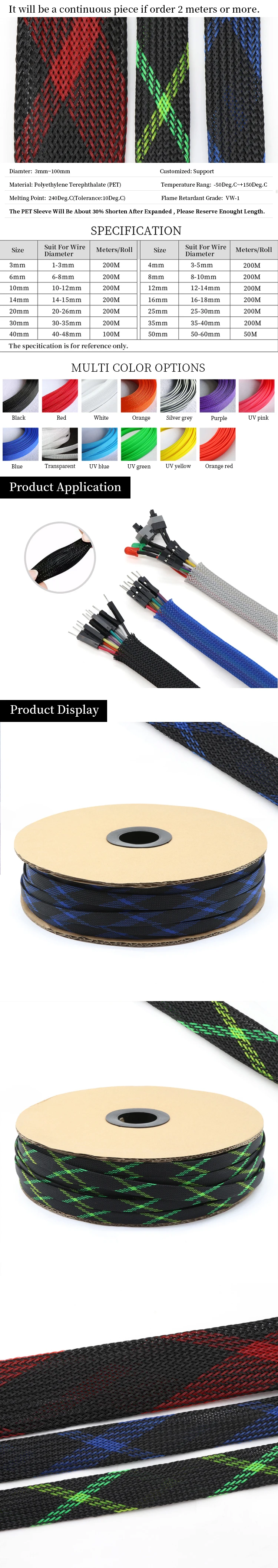 Цветной ПЭТ расширяемый кабельная муфта 2 мм 30 мм плотная оплетка...