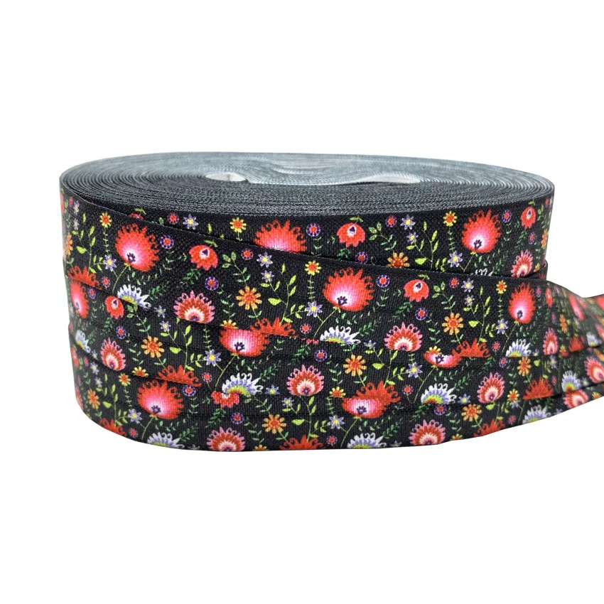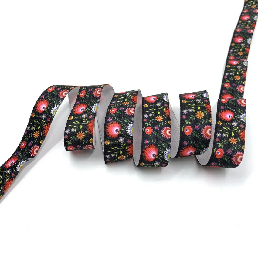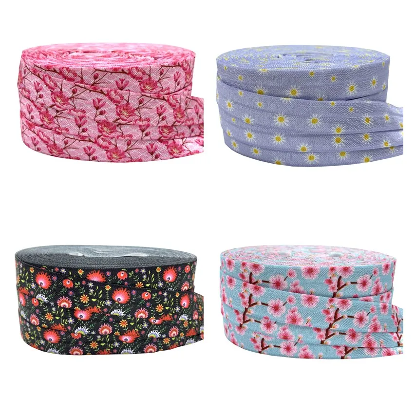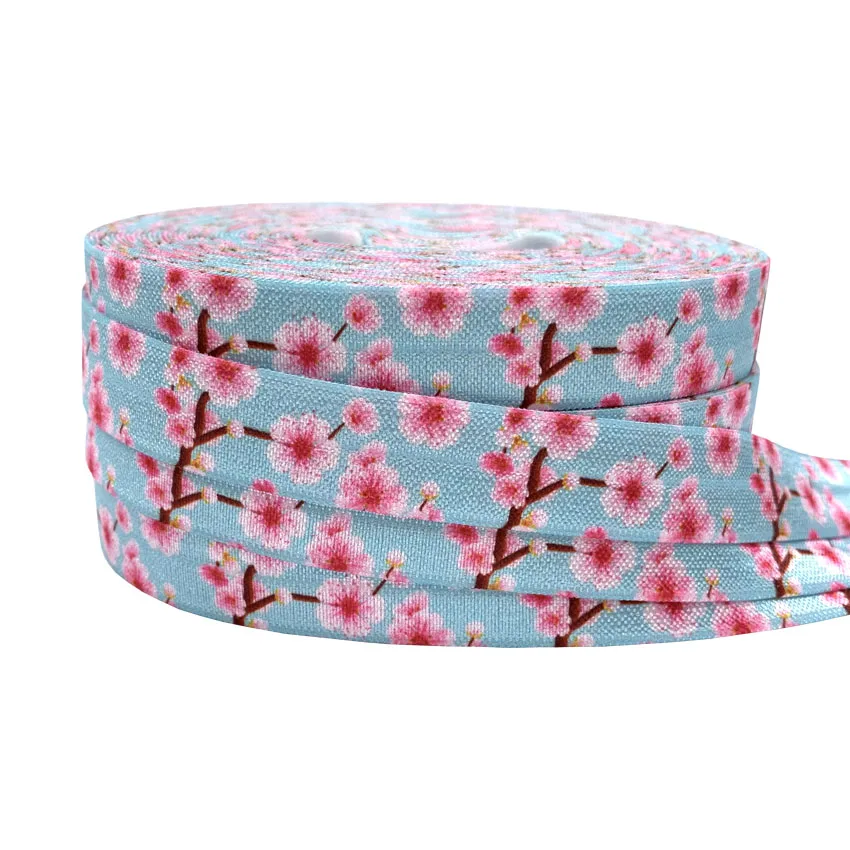 10 ярдов 15 мм цветок сливы Маргаритка солнце цветочный принт Эластичные Свадебные ленты Швейные украшения Аксессуары