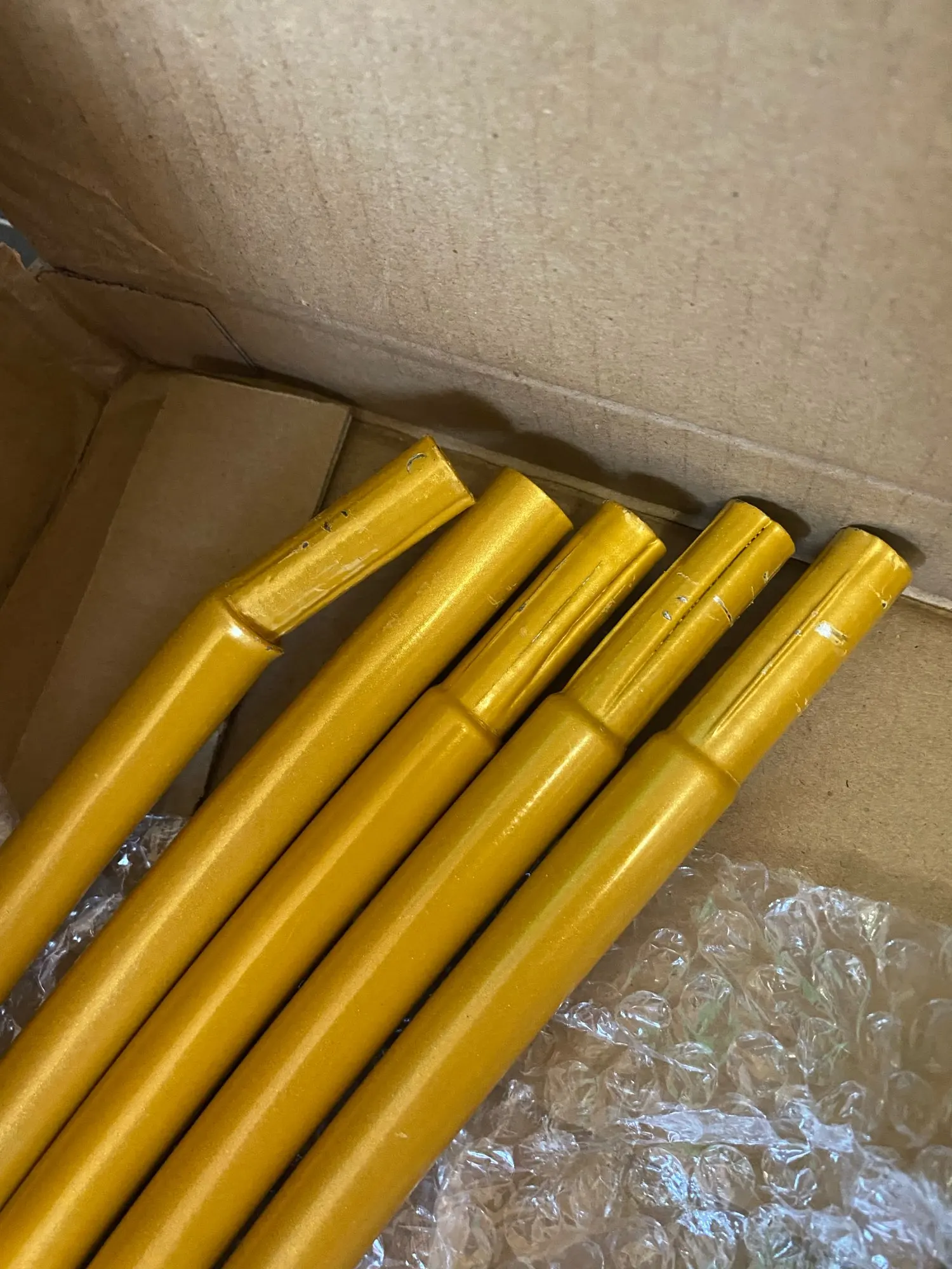 Получил в дополнение, где менее 3 недель. Цвет скорее горчично-желтый, чем золотой (это ужасно, мне придется все повторять). Я получил его с отметками в разных местах... (изношенная краска). Плохой запах при открытии тоже. И в долгосрочной перспективе я не уверен в долговечности лука. Система удерживания под воздействием давления, поэтому принудительно собрать/разобрать (pro в мероприятии), опорные точки будут слишком сильно треснуты, и больше не будет удерживать. (Я думаю, что все то же самое с другими продавцами Aliexpress)