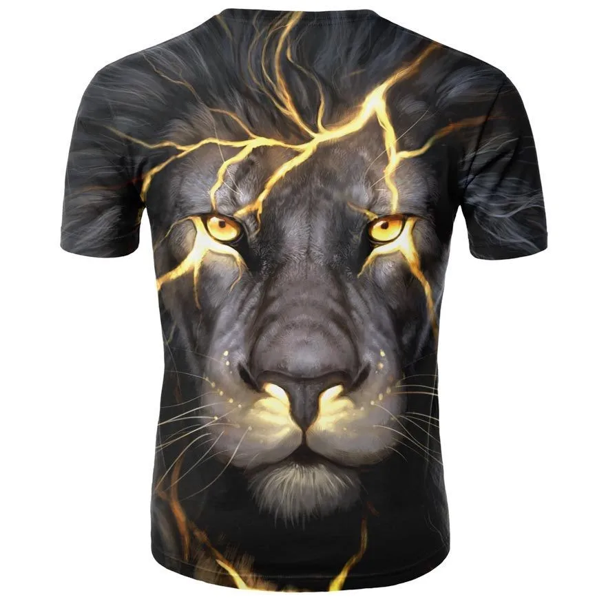 Футболка Мужскаяженская с 3D-принтом льва, модная смешная рубашка с рисунком животного, топ оверсайз, популярная одежда, лето