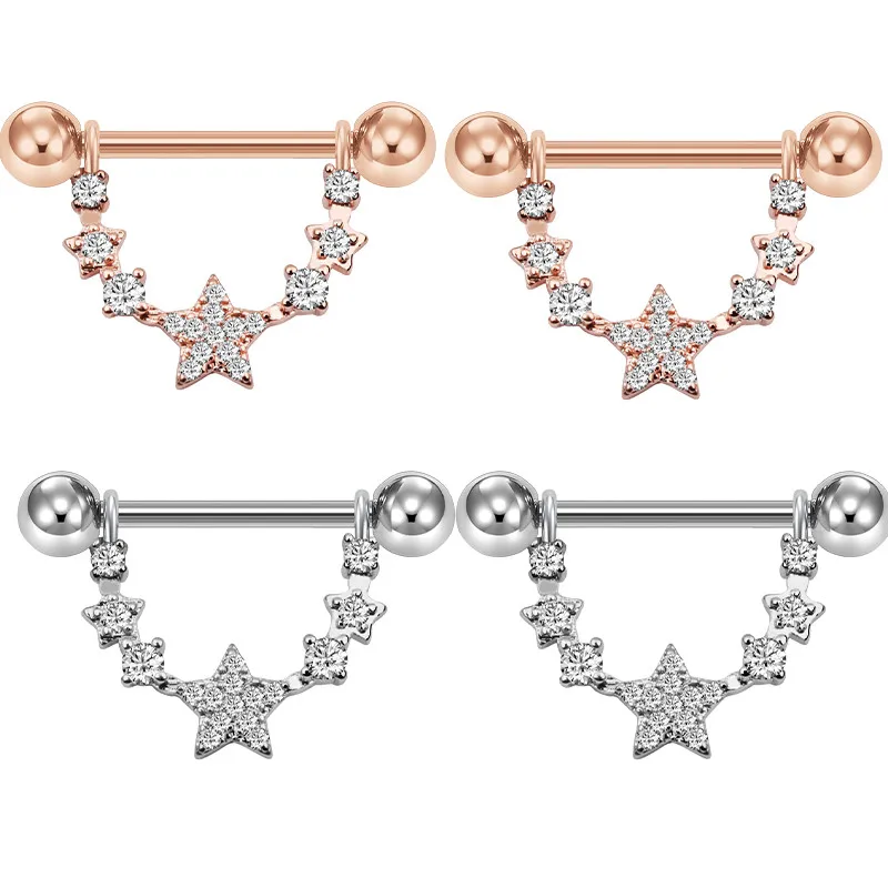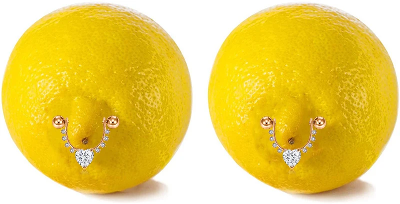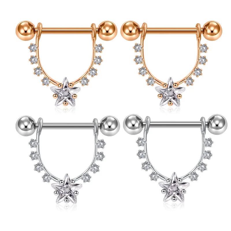 Кольцо для сосков элегантное из нержавеющей стали 316L с фианитом, ...