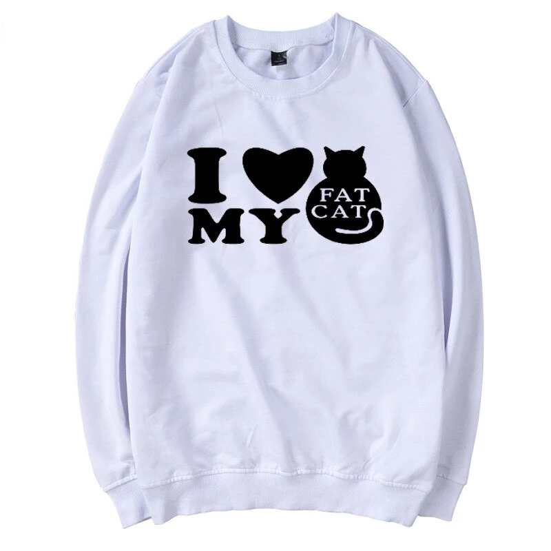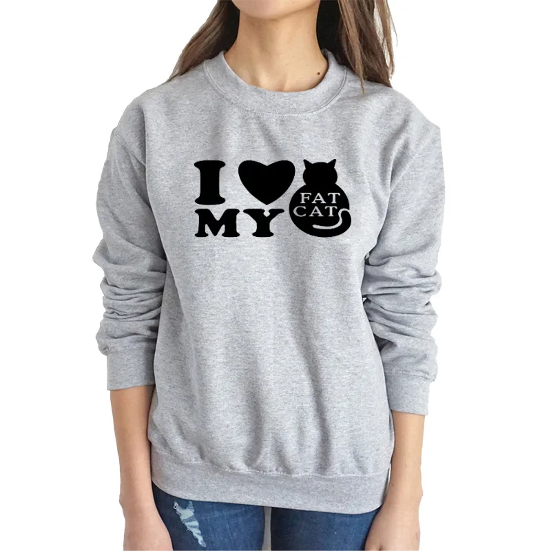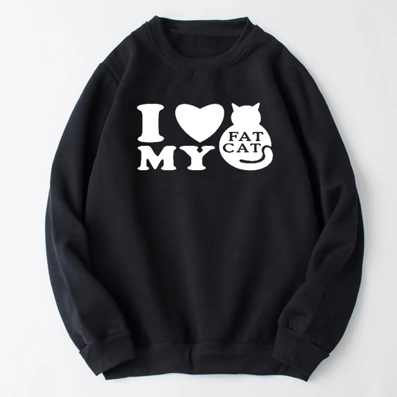 Милые футболки с надписью I Love My с толстым котом для мамы одежда для женщин свитшот для Черный и белый осенне-зимний пуловер размера плюс рубашка с длинными рукавами