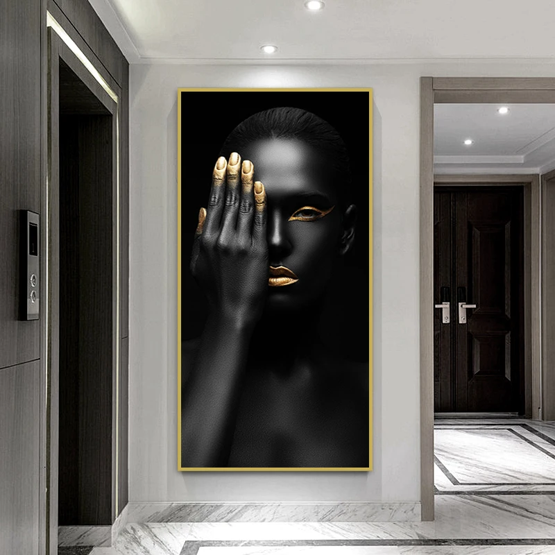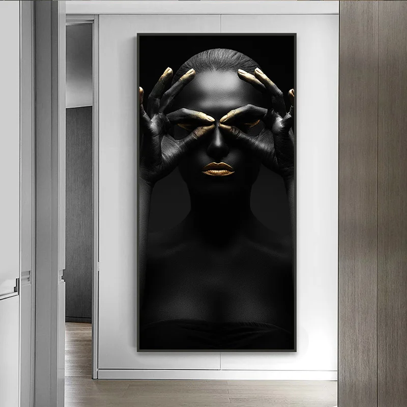 Черное золото, искусство, Картина на холсте женщина Cuadro, женские плакаты и принты, скандинавские настенные картины, Современное украшение для дома, роспись