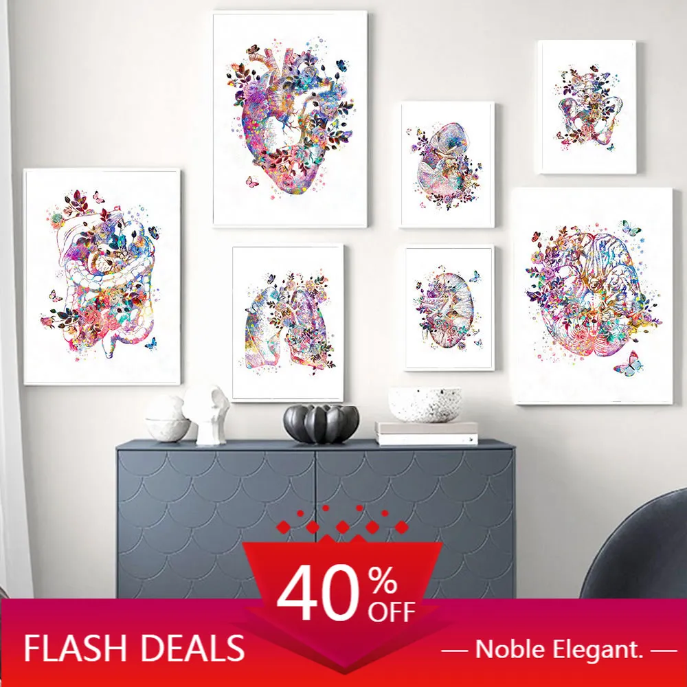 Анатомические Органы Винтаж Рождественский плакат холст печати мозга сердца легких диагностический инструмент анатомический плакат Настенные картины медицинский Hoom Декор