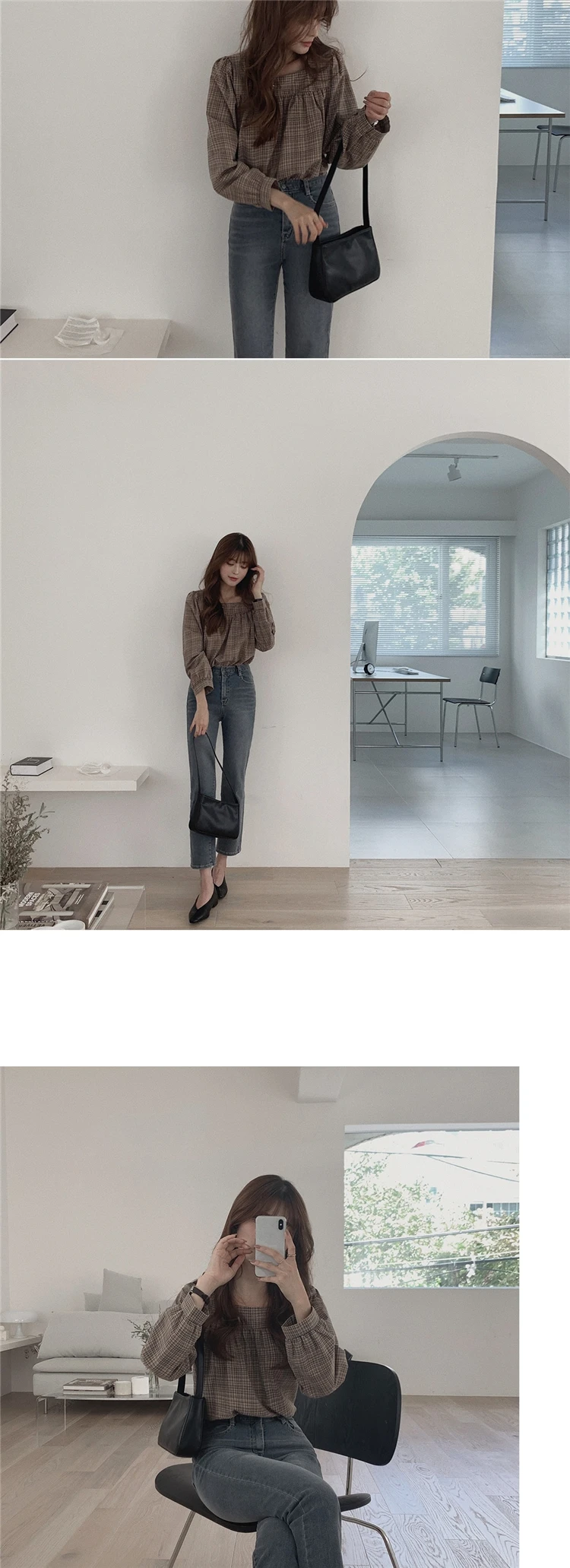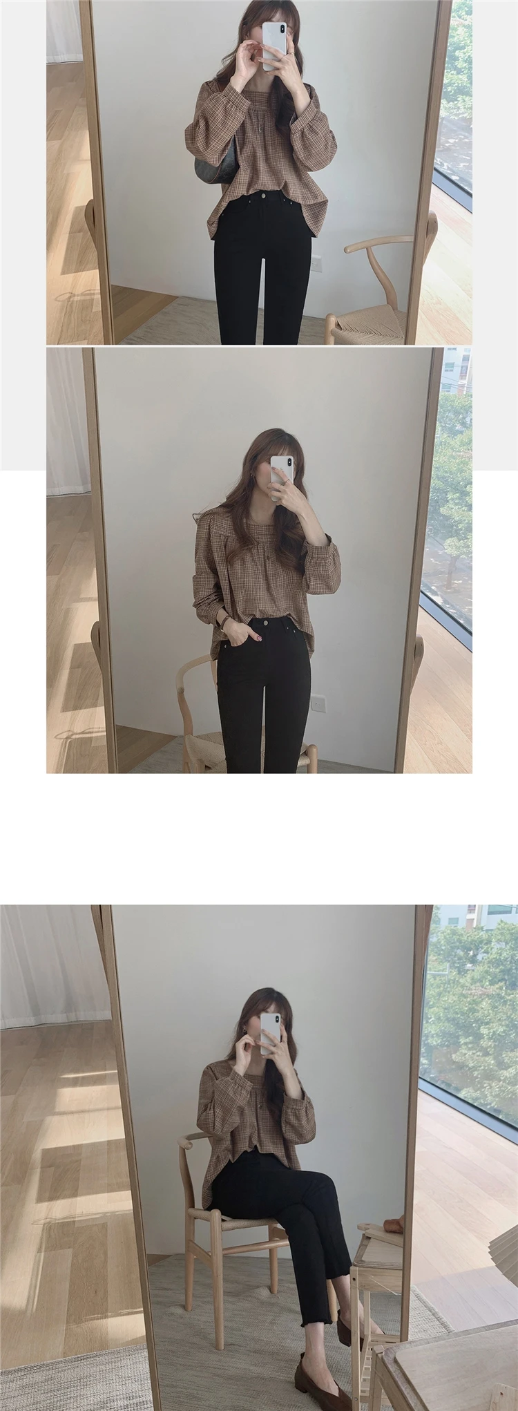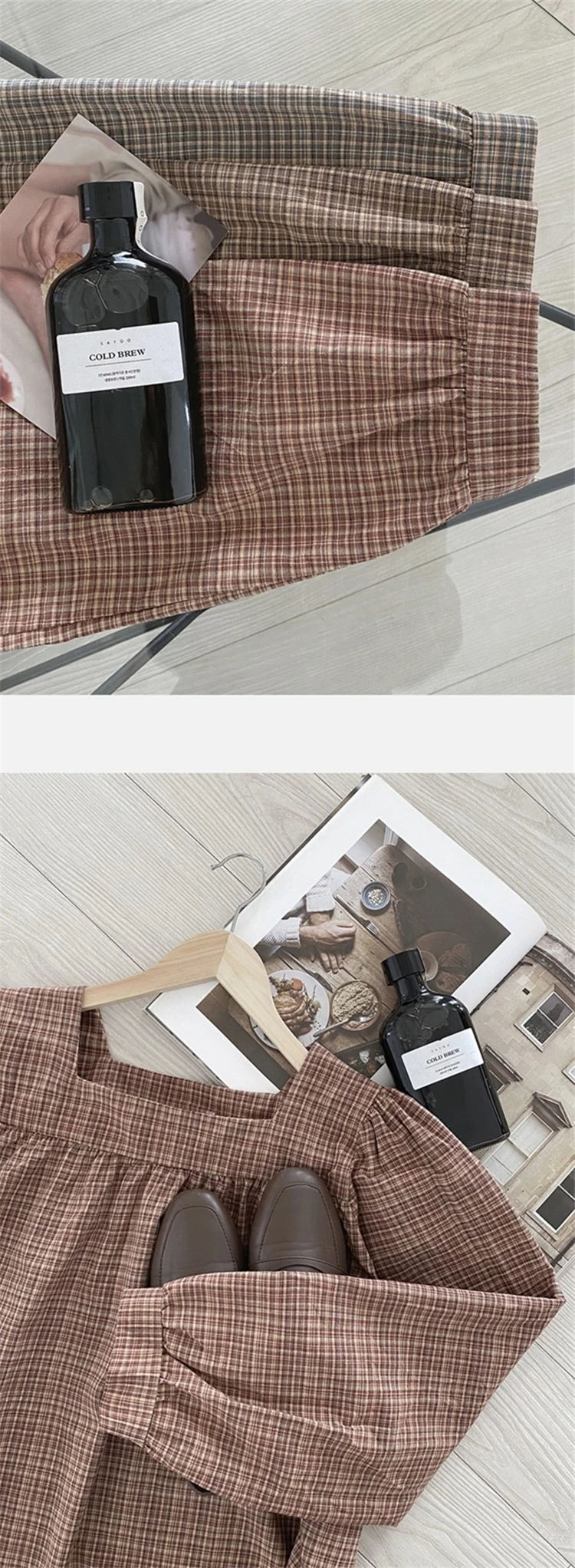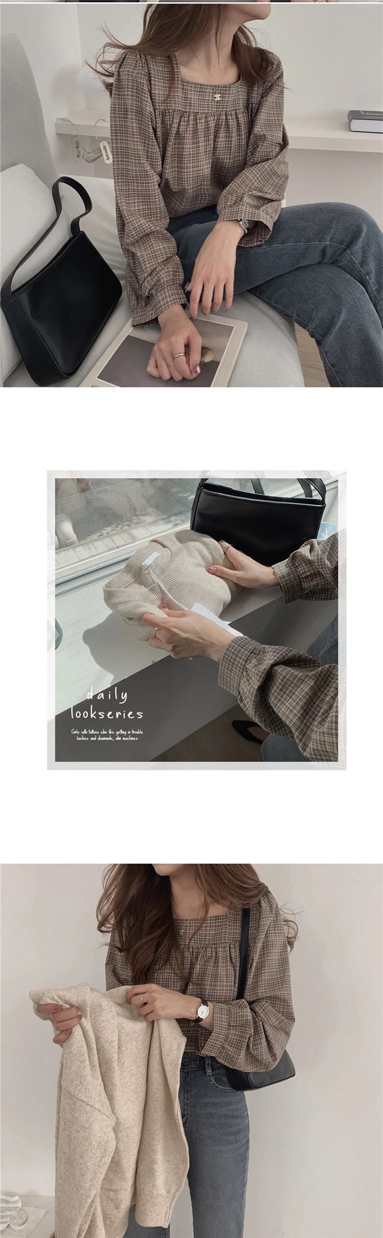 Новинка 2020 осень зима женские блузки квадратный воротник модная клетчатая рубашка дикие Модные большие винтажные женские топы BL3256