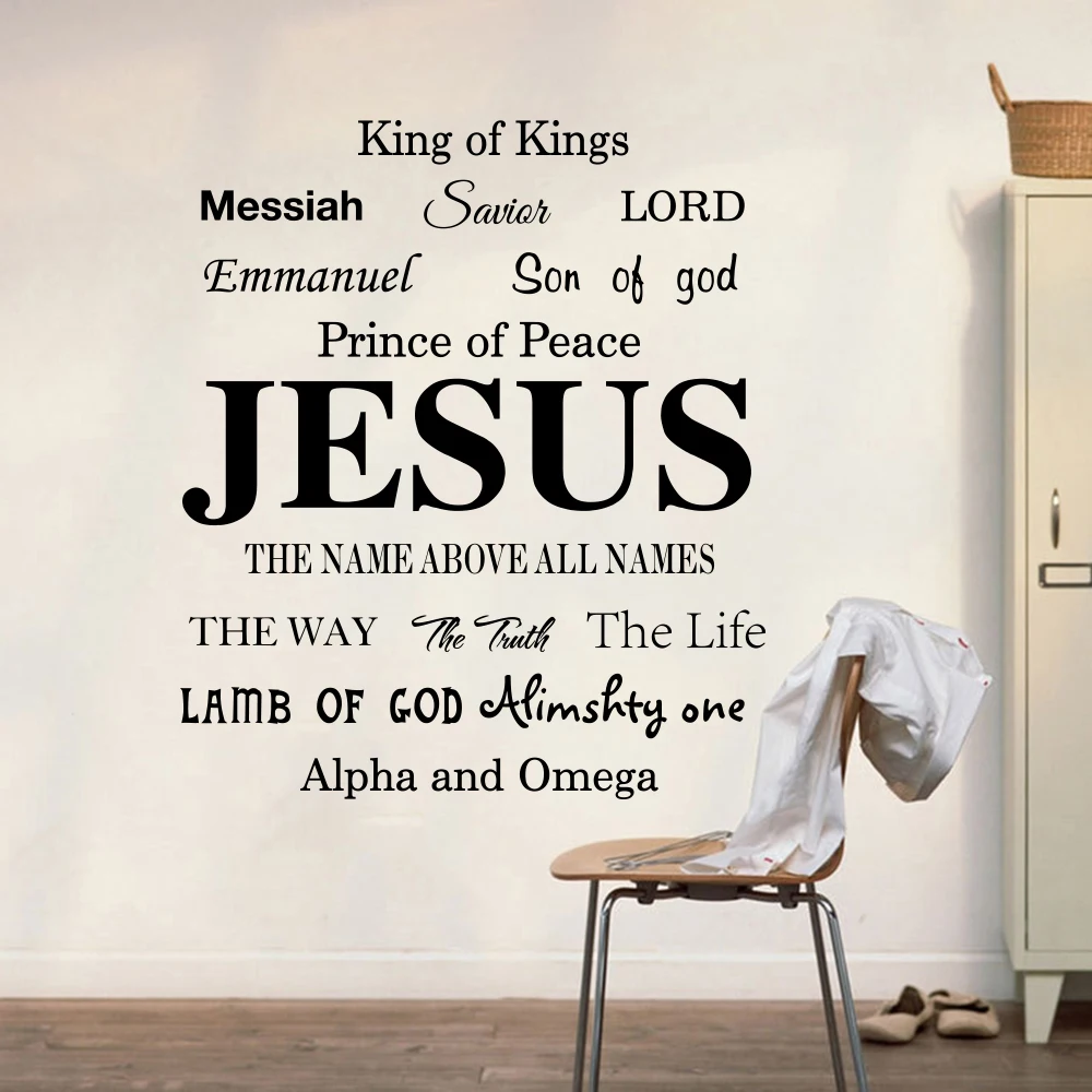 Современное имя Иисуса Мессия Бог Наклейка Настенная Слова спальня Иисус Властелин религия надпись Термоаппликации для кухни на стену
