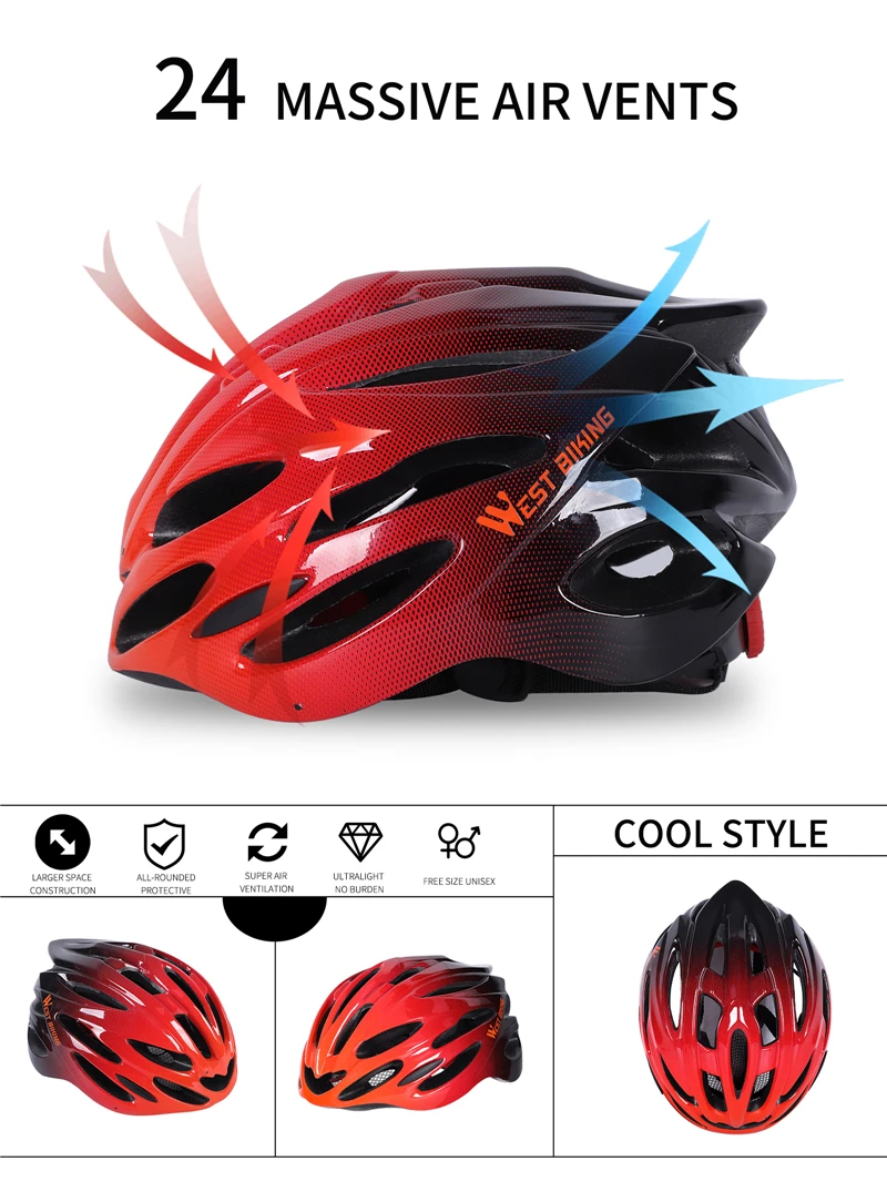 WEST BIKING ультралегкий велосипедный шлем безопасность Спорт Велоспорт вентиляционные отверстия Casco Ciclismo защитный Горный Дорожный велосипед для мужчин женщин мужчин шлем