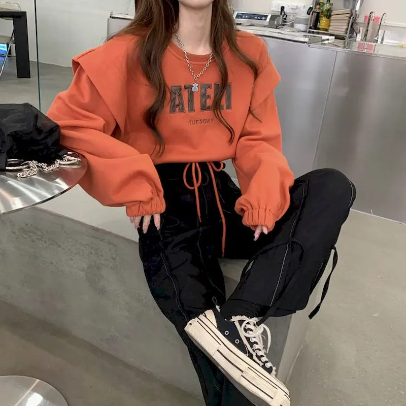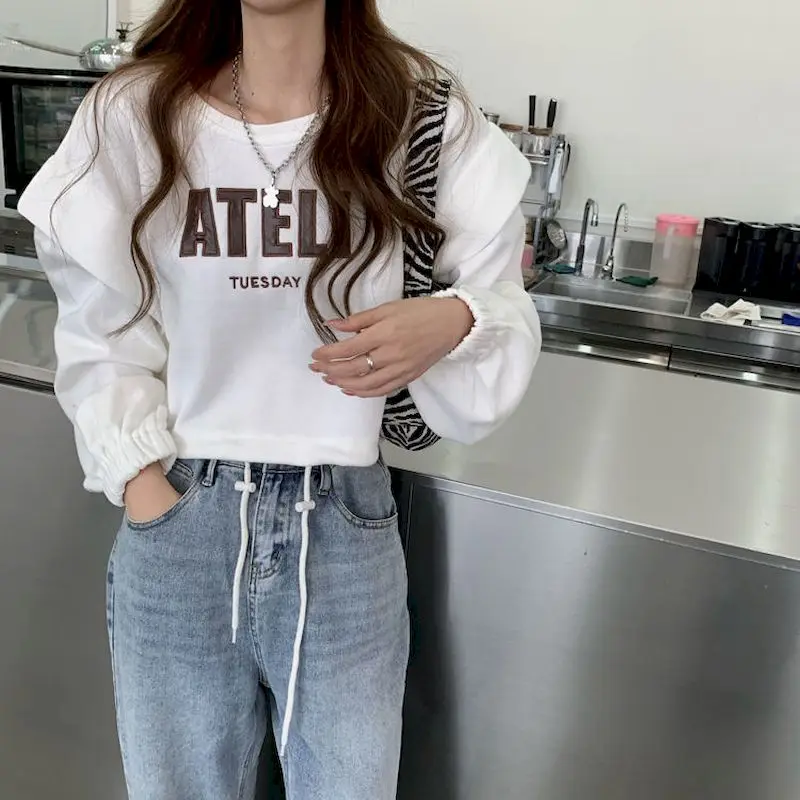 Корейская версия свободного кроя, Свитшот из двух частей с имитацие...