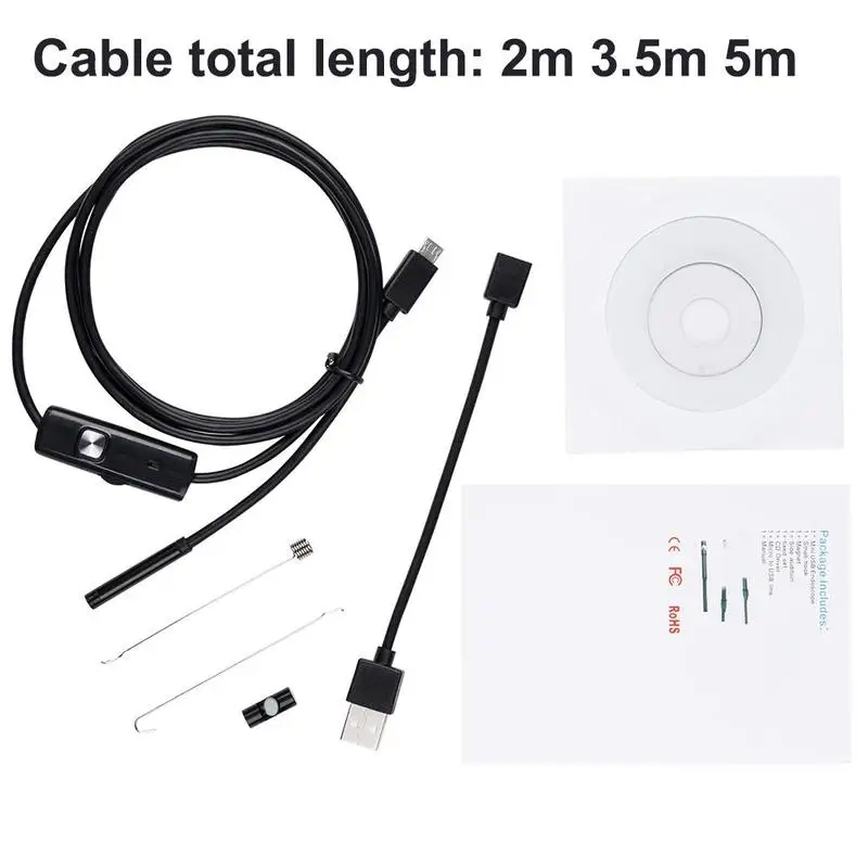 Usb-эндоскоп 7 мм, 1 м, 2 м, 5 м