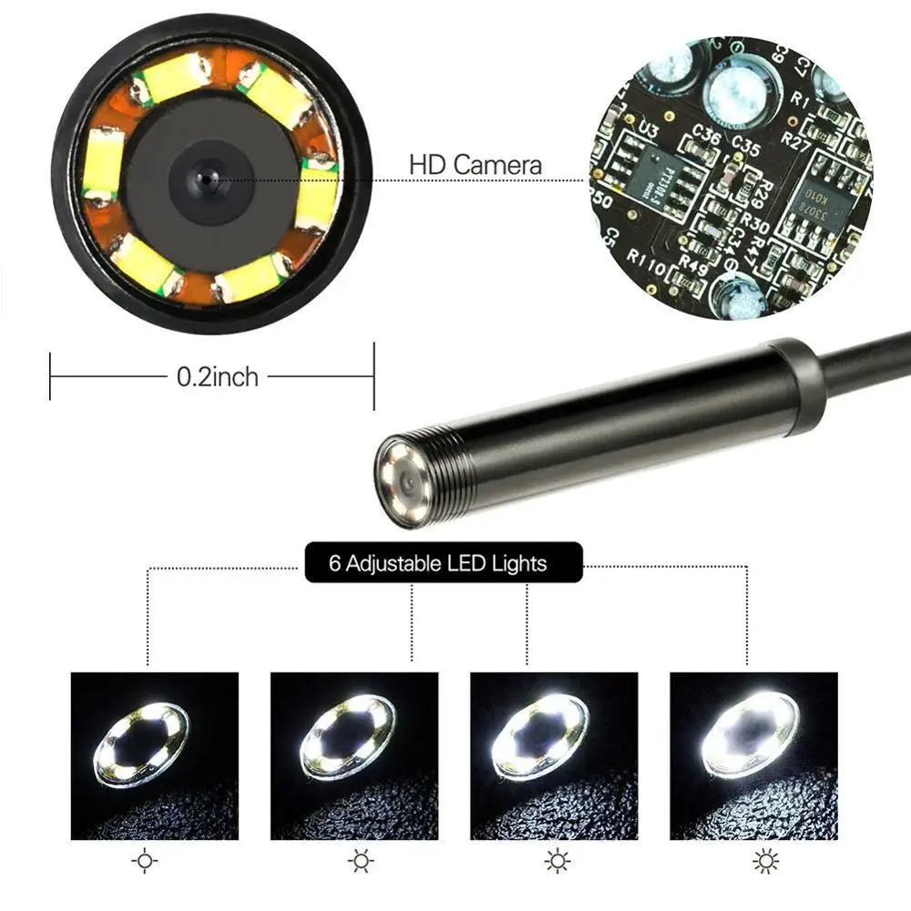 USB-эндоскоп с объективом 5,5 мм, кабелем 510 м и 6 светодиодами