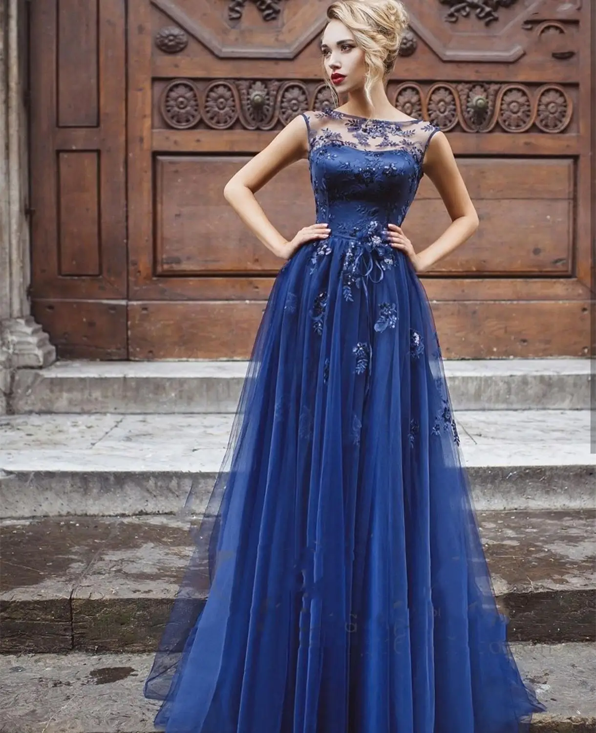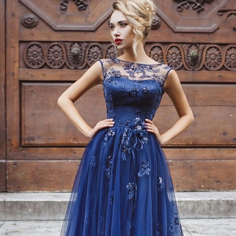 Платье для выпускного вечера, из двух предметов, с синей кружевной ...