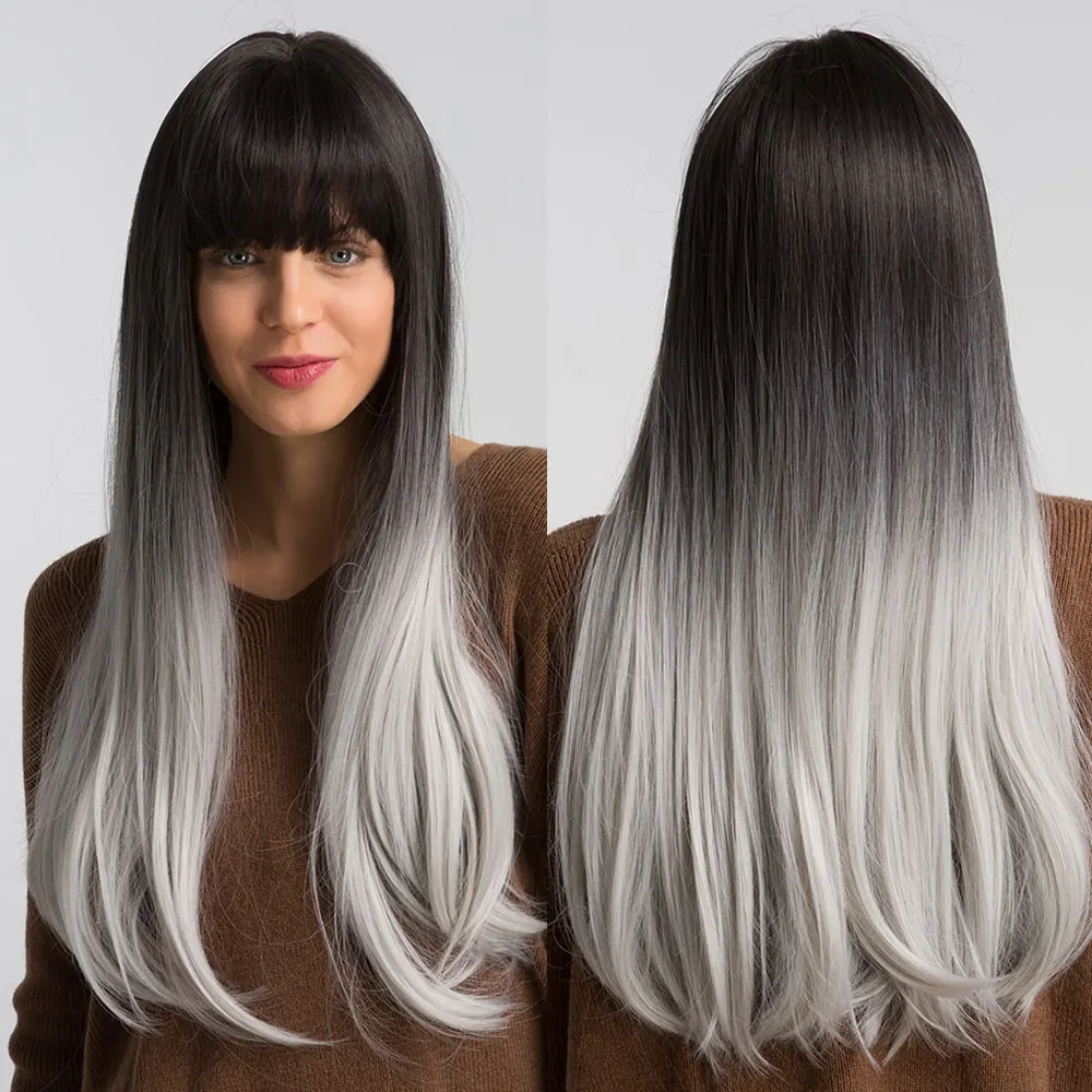 Синтетические парики с челкой HENRY MARGU, термостойкие, прямые, красные, с эффектом омбре, парики на каждый день