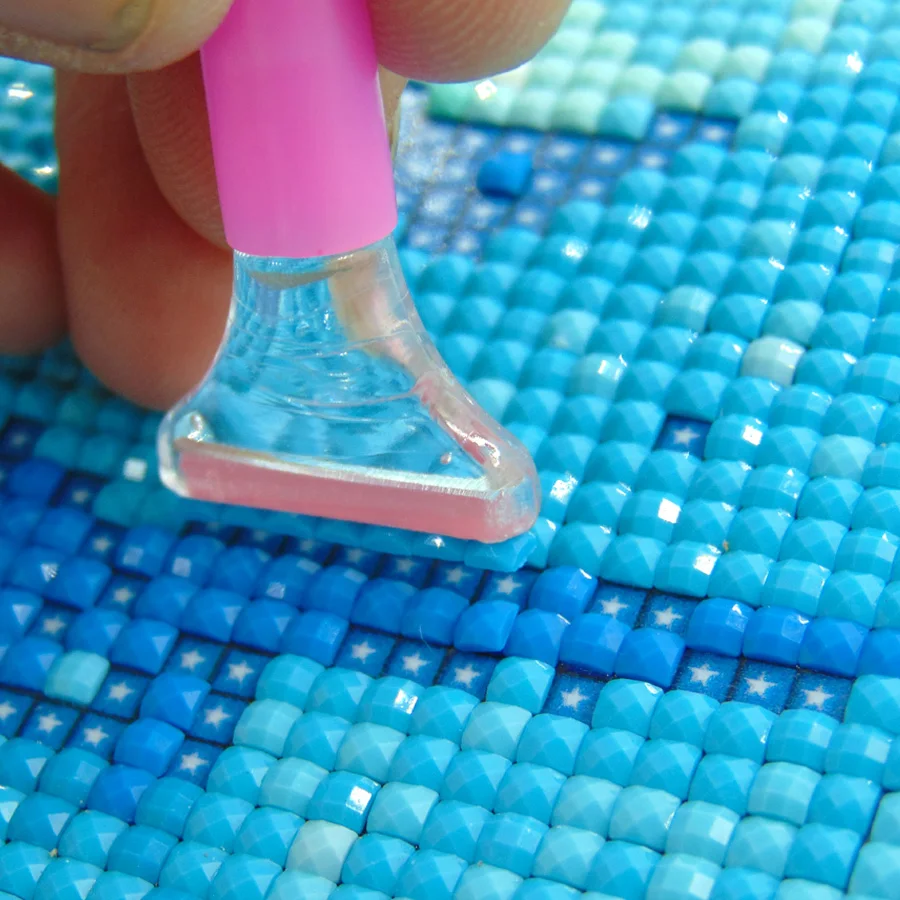 1. Выберите один цвет в соответствии с цветовым кодом и поместите алмазы в тарелку;2. Встряхивание пластины, чтобы сделать алмазы вверх;3. Налейте ручку клеем, а затем приклейте ее к полотну;4. После завершения слегка прижмите бриллианты рукой или книгой, чтобы они были идеально закреплены.Советы: алмазы несъедобные, пожалуйста, держите их подальше от маленького ребенка.