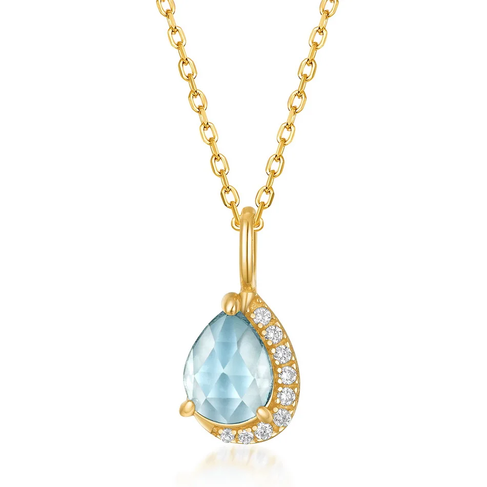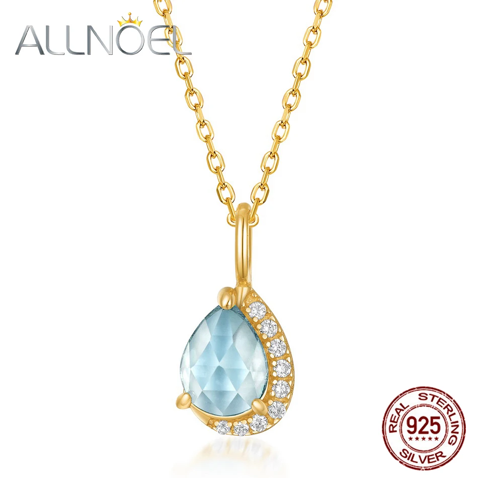 ALLNOEL небесно-голубой топаз, кулон, Модное изящное женское ожерелье из стерлингового серебра 925 пробы, серебряная груша, роскошная форма, вечерние ювелирные изделия, подарки, Новинка