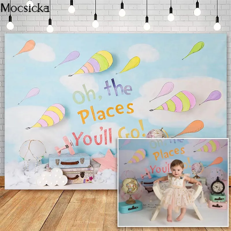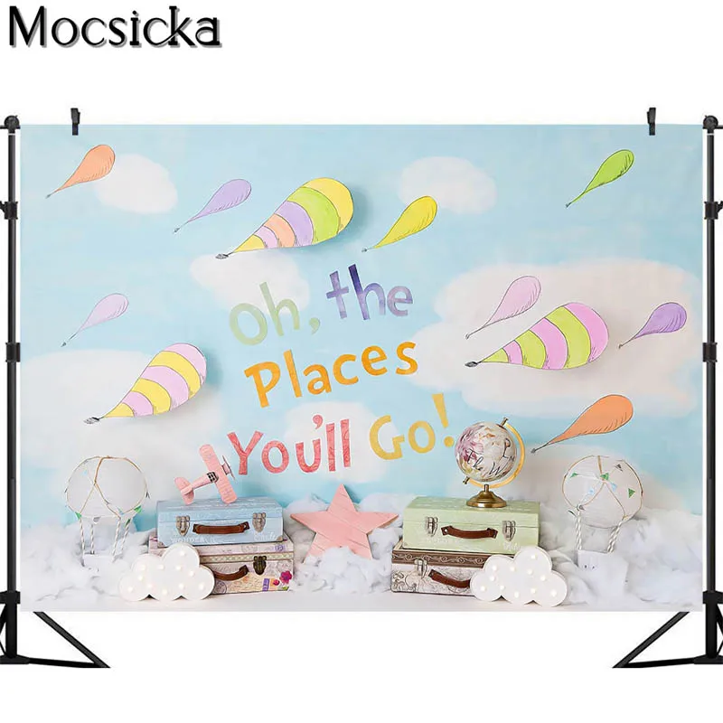 Mocsicka тема для путешествий торт Smash фон воздушный шар чемодан декор для детей 1 день рождения фотосессия фон для фотостудии