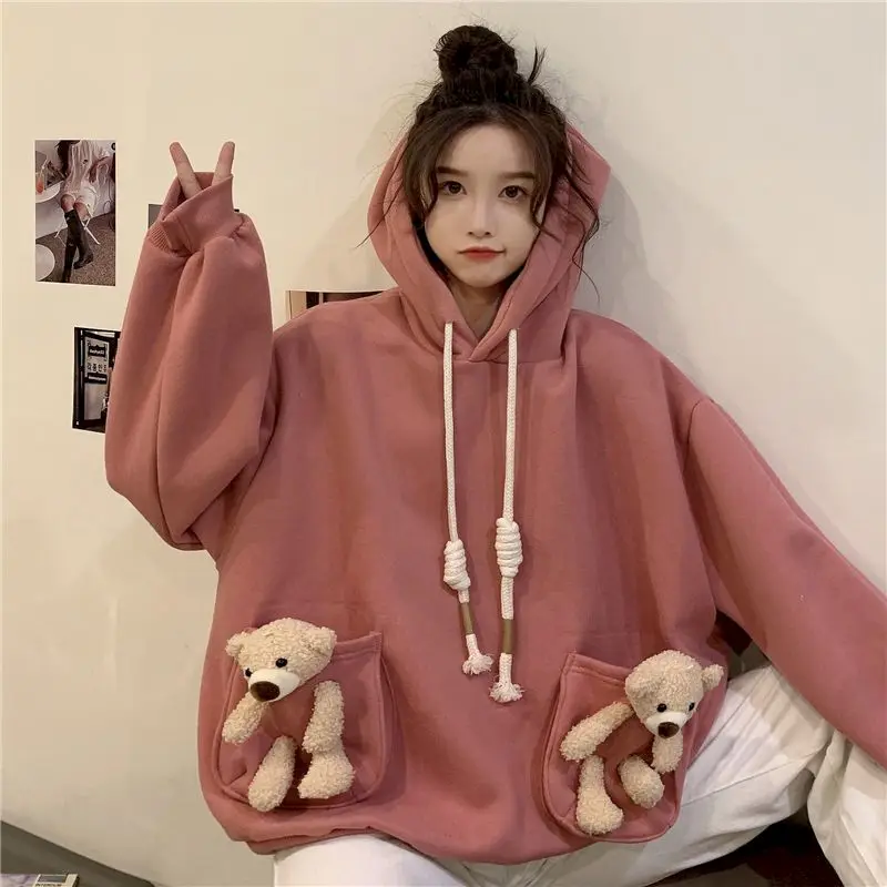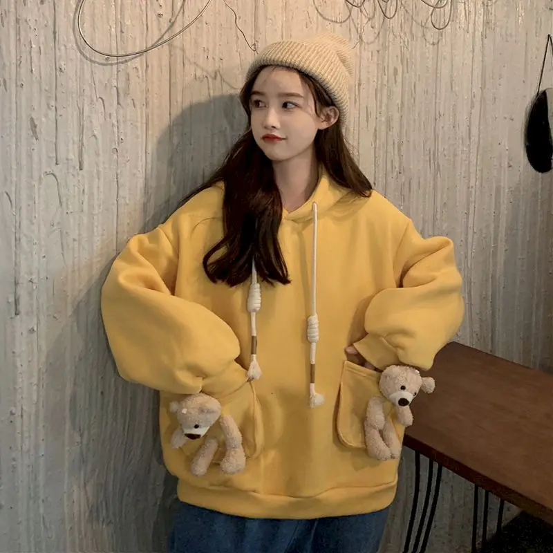 Женская толстовка с капюшоном, утепленная бархатной подкладкой, Осень-зима 2021, новая Корейская версия свободного кроя, с карманами, для студентов