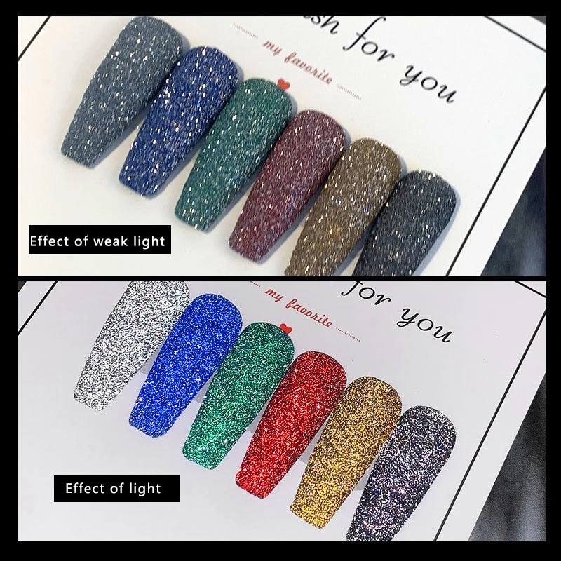 Очень Сияющий, как алмаз, показывающий различные цвета под другим светильник. Его можно использовать для нейл-арта, макияжа и одежды, чтобы сделать вас более красочными