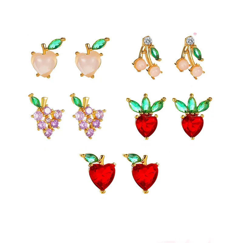 Блестящие модные серьги-гвоздики с кристаллами яблока, винограда, к...