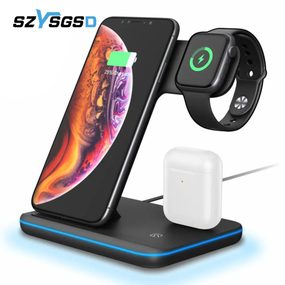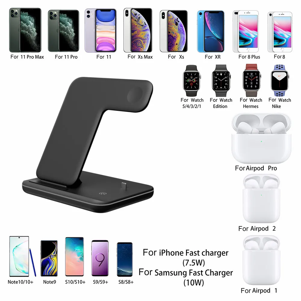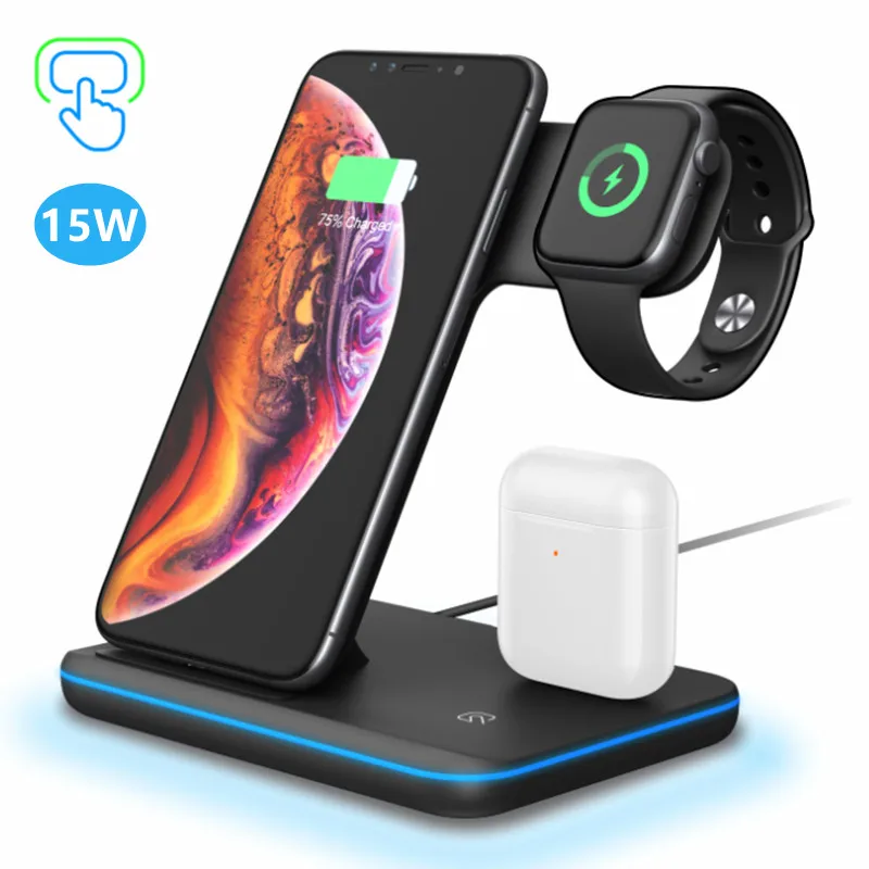 Беспроводное зарядное устройство 3 в 1, подставка для iPhone 12 Pro 13 Pro max XR, быстрая зарядка для Apple Watch 7 6, держатель для AirPods Pro