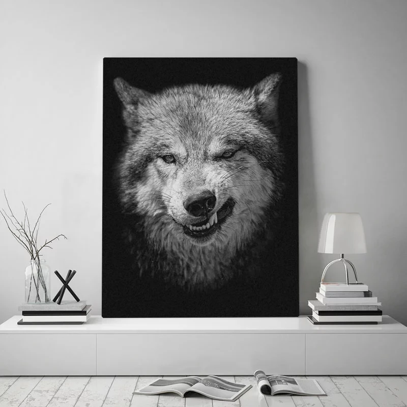 Домашний декор на холсте дикий злый Черный волк, картины с лицом, животные, картины на стену, печатный модульный постер, рамка, картина для гостиной