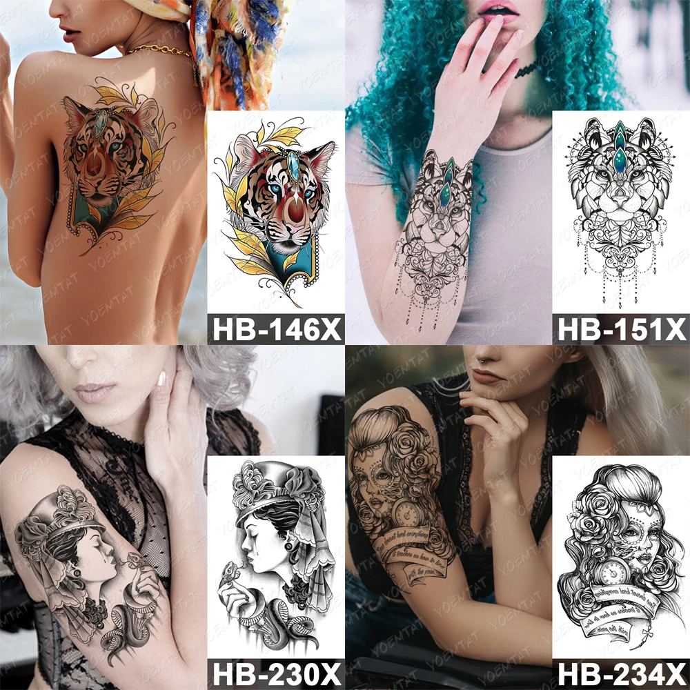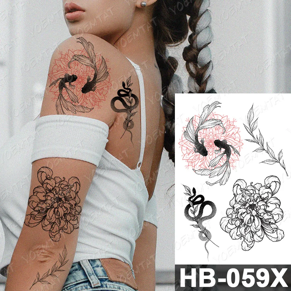 Водостойкая временная татуировка наклейка темная Старая школьная змея Цветок флеш-татуировки Черный лотос боди-арт рука поддельные татуировки для женщин и мужчин