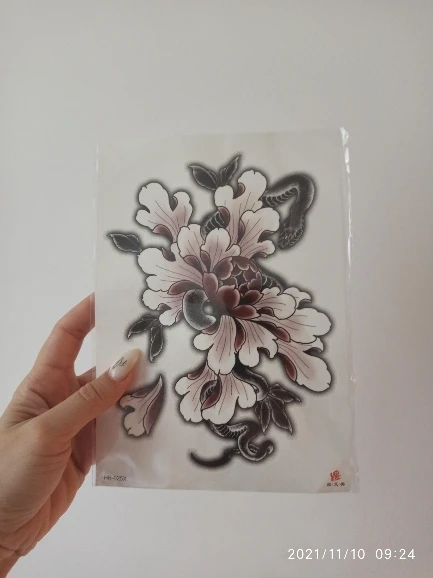 Всем привет! Доставка быстрая, трек отслеживался. Упаковка в воздушную плёнку, пакет магазина. Качество отличное Татуировка просто бомба. Нужно вытащить тату из упаковки, снять защитную плёнку, намочить бумагу с рисунком с обратной стороны, плотно прижать рисунком к коже и сползающим движением снять. Лично я, ношу тату пару недель, потом постепенно рисунок стирается. Дискомфорта не причиняет. Очень классный способ исполнить мечту, не забивая тело. Довольна, рекомендую!