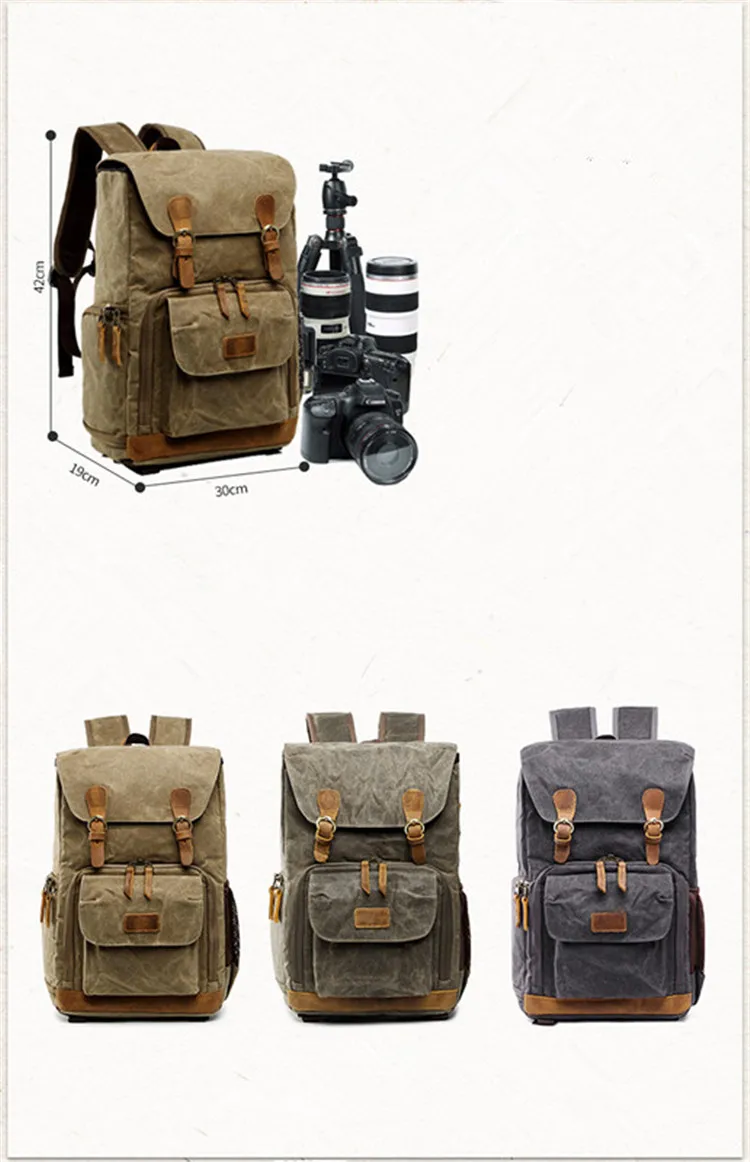 Рюкзак из вощеной холщовой ткани в стиле ретро с отделением для камеры, амортизирующий водонепроницаемый рюкзак для видеокамеры DSLR