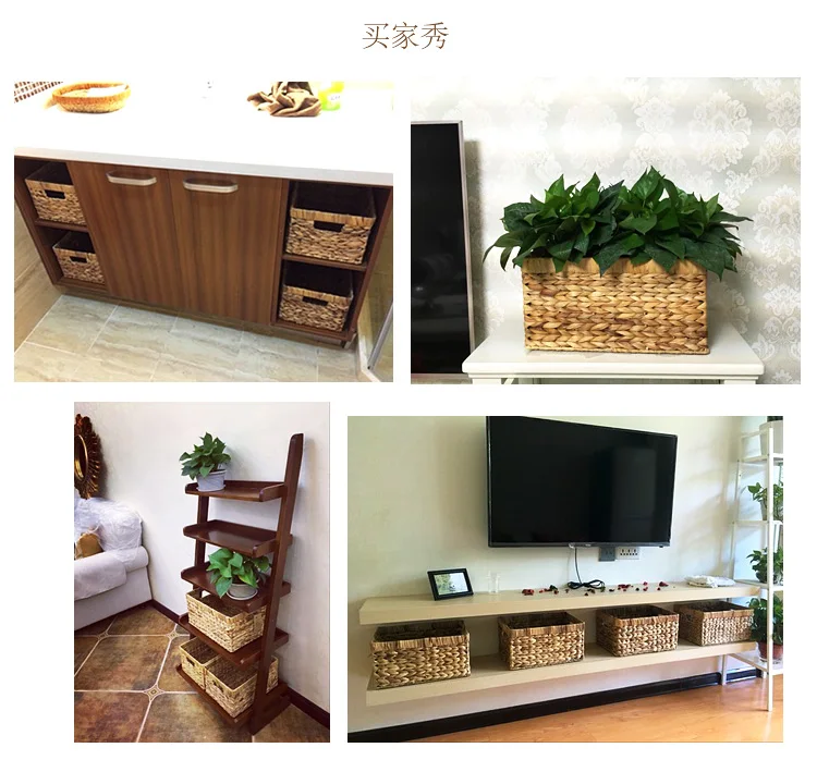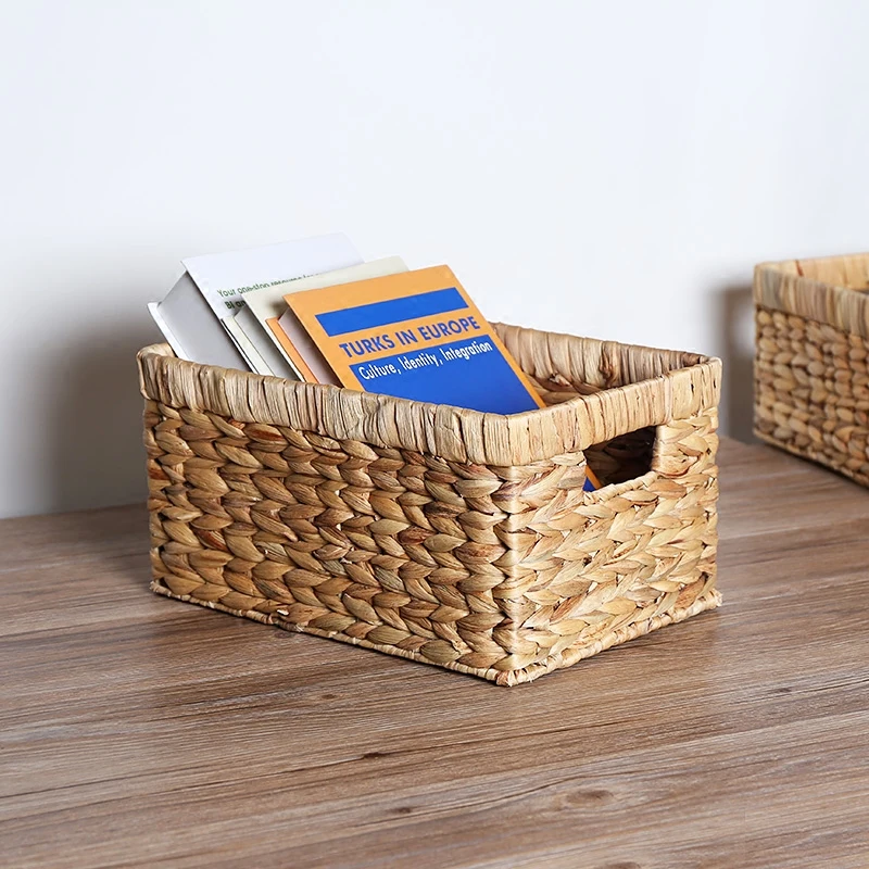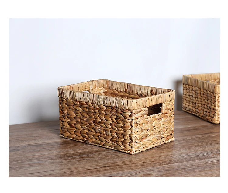 Корзина для хранения из натуральной соломы прямоугольная настольная проволочная ручка Декор водоросли Плетеный плетеная корзина Полки для организации пространства WF1015
