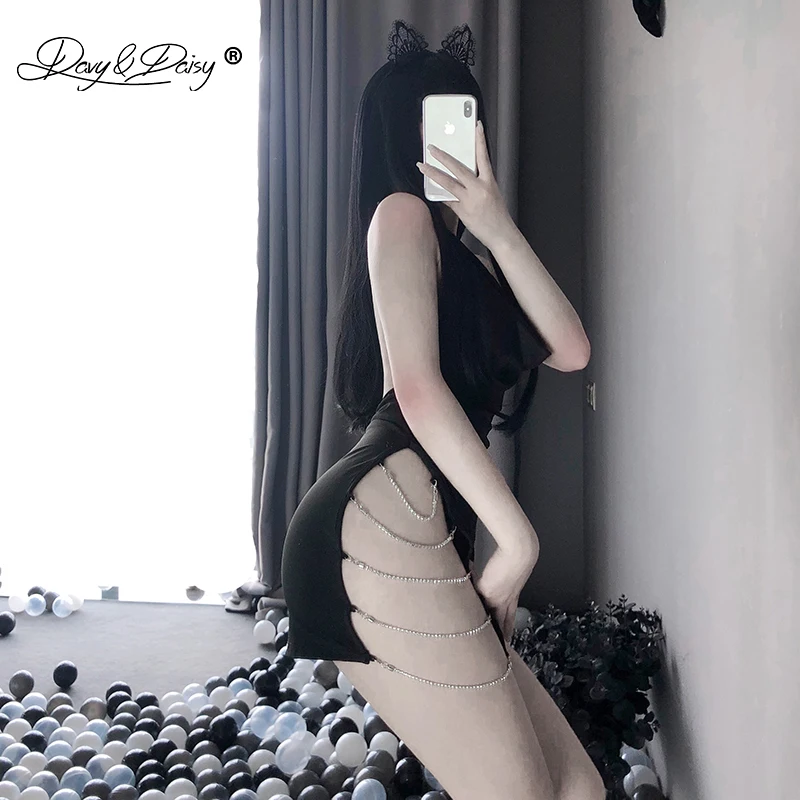 Соблазнительное нижнее белье для косплея, Женская ролевая форма в виде кошки, женская шелковая ночная рубашка с кошкой, комплект с ушами JA103