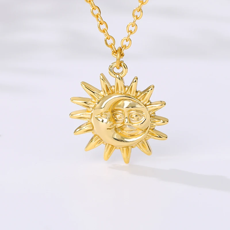 Цвет: золото, платина, розовое золото Узор: солнце и луна Упаковка: карточная упаковка Стиль: тренд, мода Тип: ожерелье с подвеской