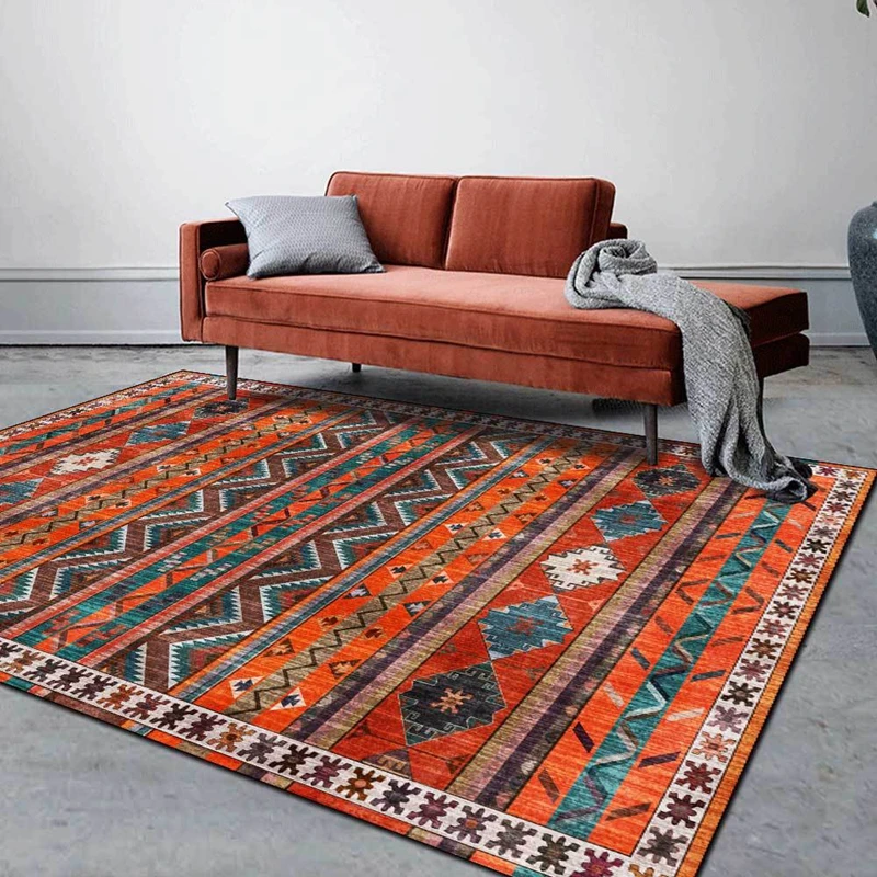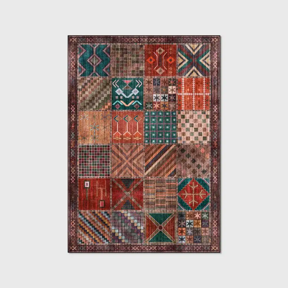 Ретро этнический геометрический Коврик в персидском стиле, темно-красный коричневый, нескользящий напольный коврик для гостиной, спальни, кухни, прихожей, декоративный коврик