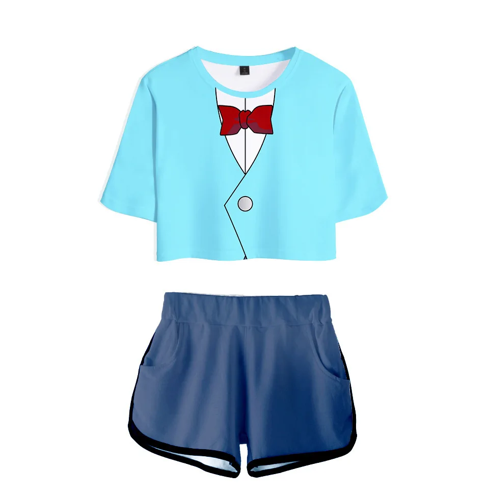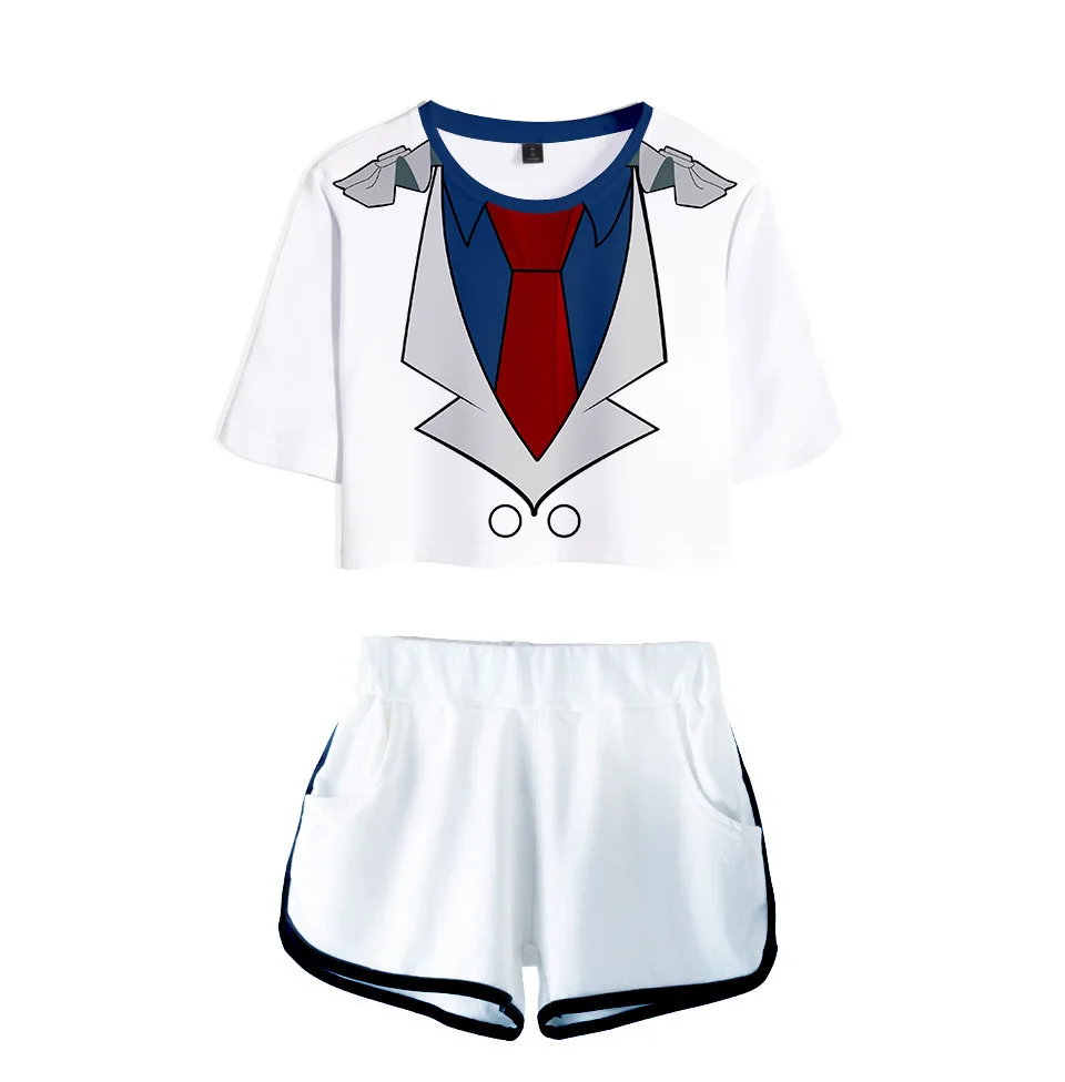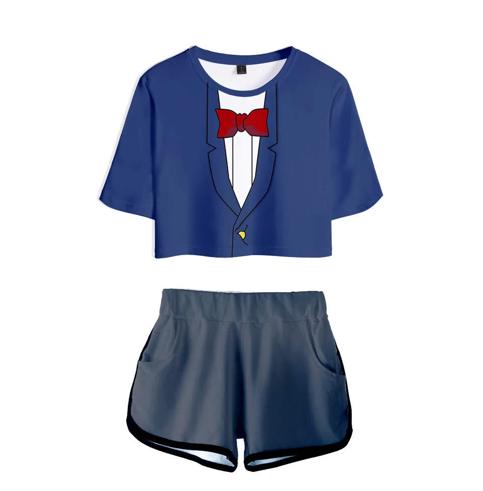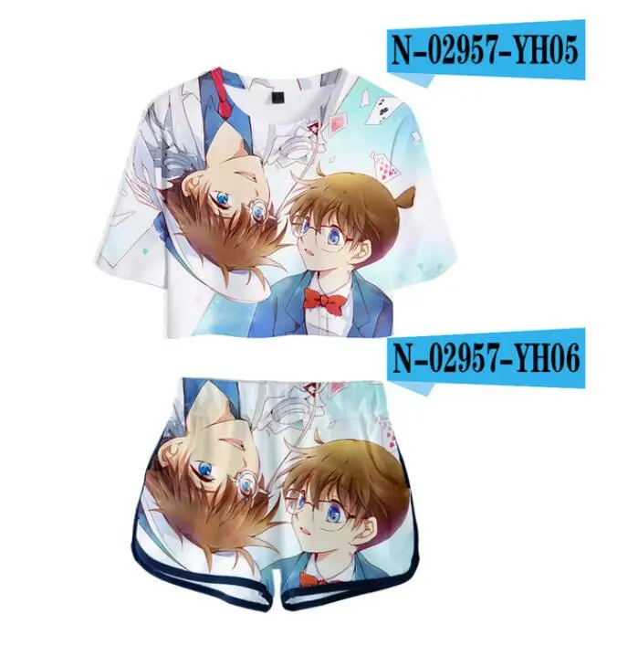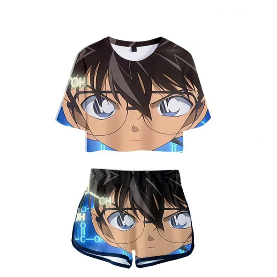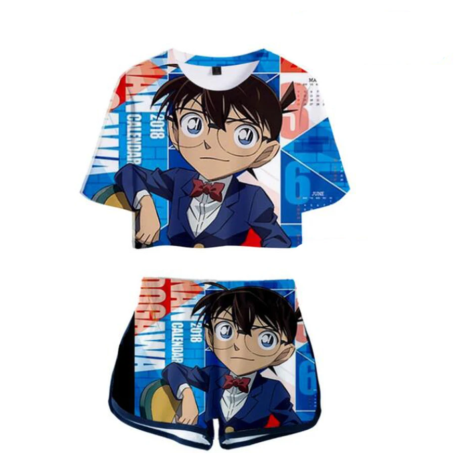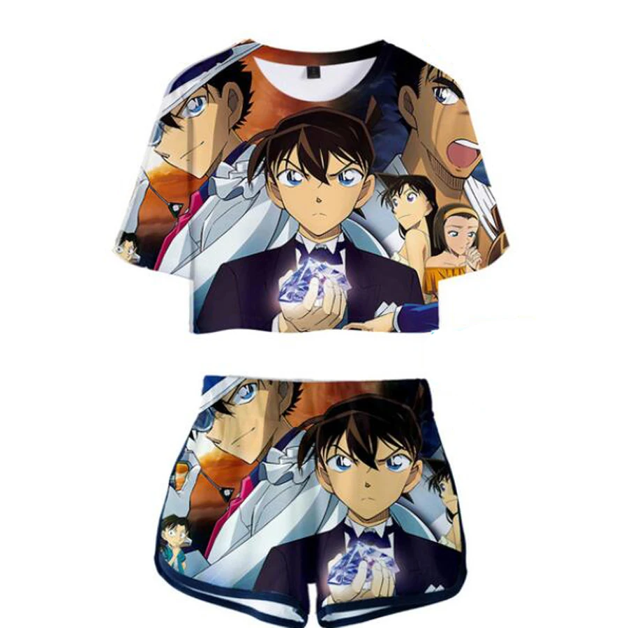 Комплект женский из двух предметов, короткий топ и шорты с 3D-принтом в стиле аниме Детектив Конан, Женский комплект 2 шт.
