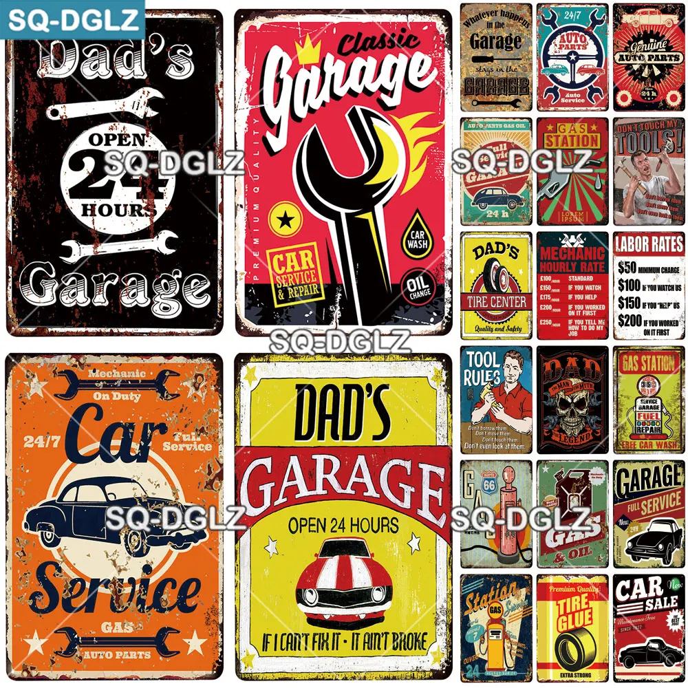 SQ-DGLZ гараж Винтаж металлический знак Оловянная табличка Ретро гараж Настенный декор бар украшения старых автомобилей Club человек пещера автомобиля Услуги