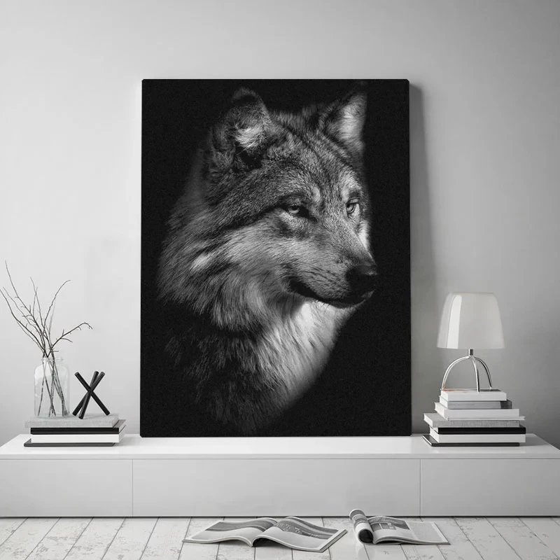 Картина на холсте, HD печать, черный дикий Постер "Волк", аниме, черный, белый, украшение для дома, живопись для спальни, модульные фотографии, рамка