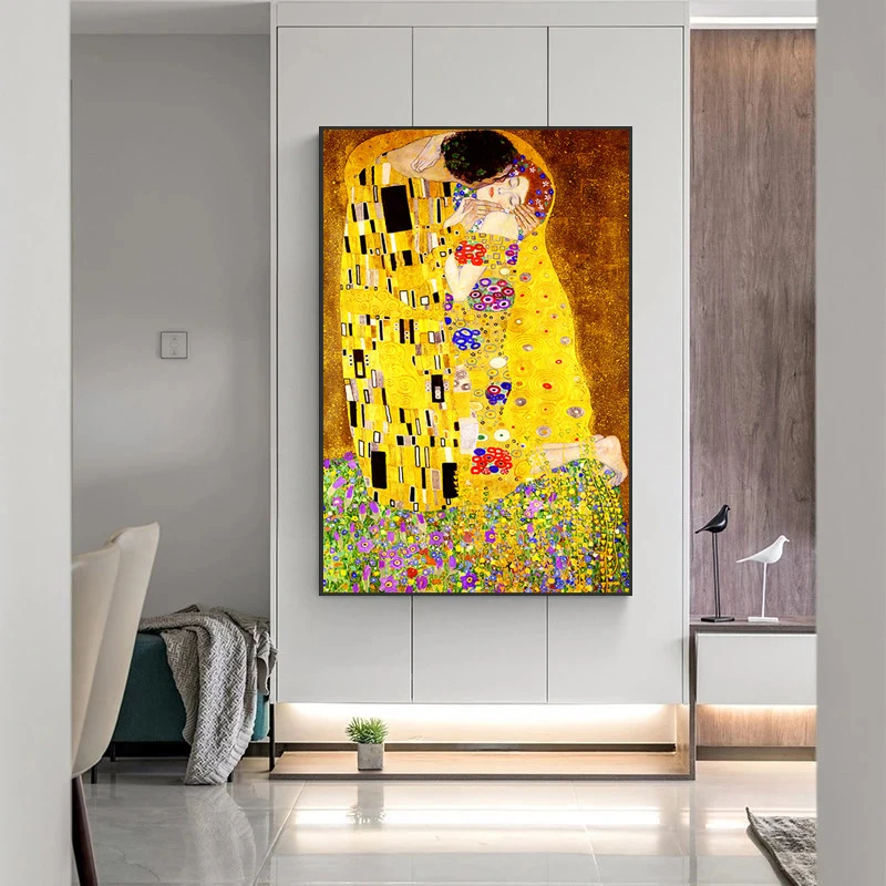 Поцелуй Густава Климта, Репродукция, картина маслом на холсте, скандинавские плакаты и печать, Картина Настенная для гостиной