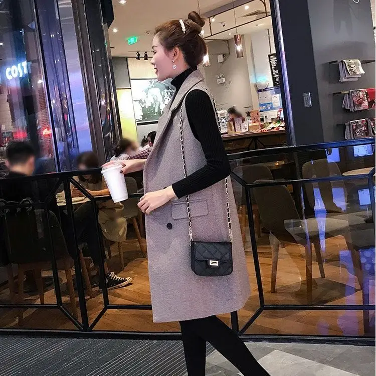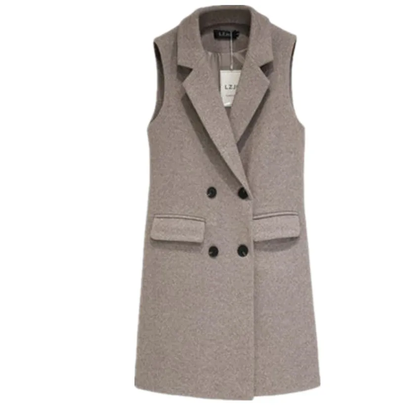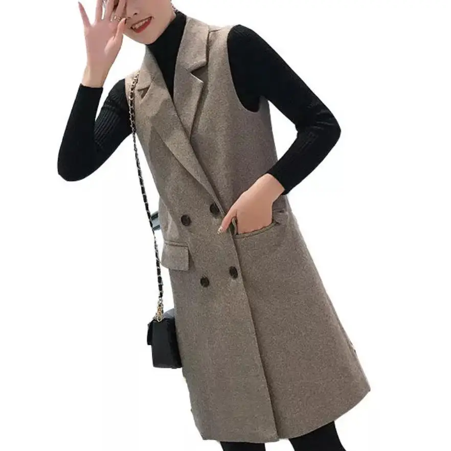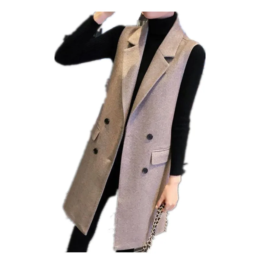 Шерстяной длинный клетчатый жилет женский без рукавов двубортный женский зимний жилет офисный длинный Повседневный жилет