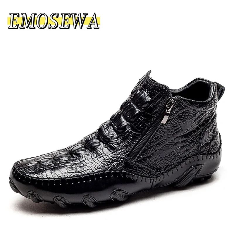 Зимние мужские ботинки Челси с подкладкой из пуха; Сезон осень-зима; Брендовые кожаные теплые плюшевые ботильоны; Мужская обувь с высоким берцем; Размеры 38-47