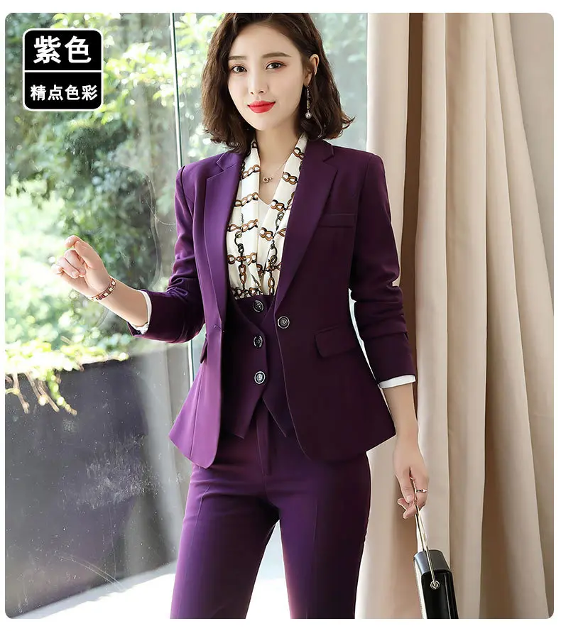 Женский деловой костюм из 2 предметов, элегантный облегающий костюм с блейзером на две пуговицы и брюками, Офисная форма