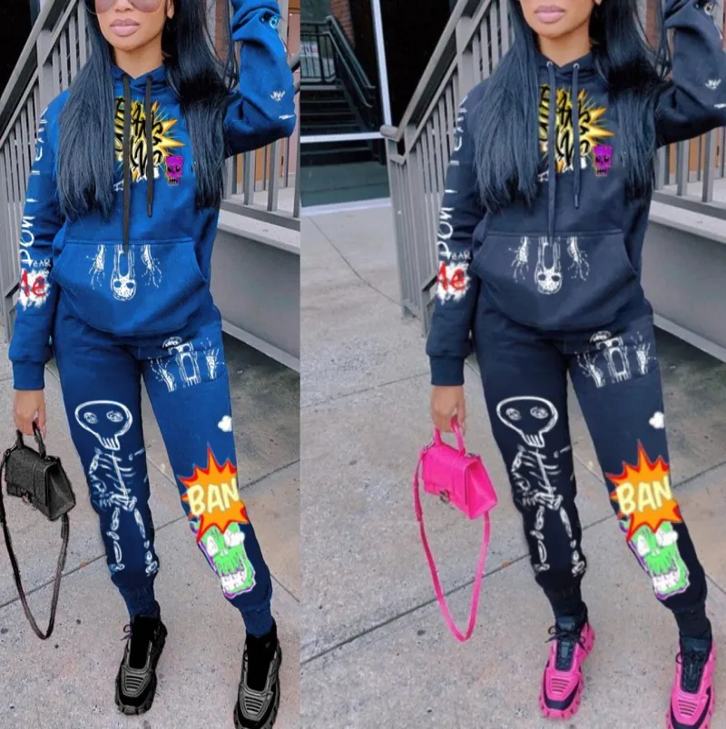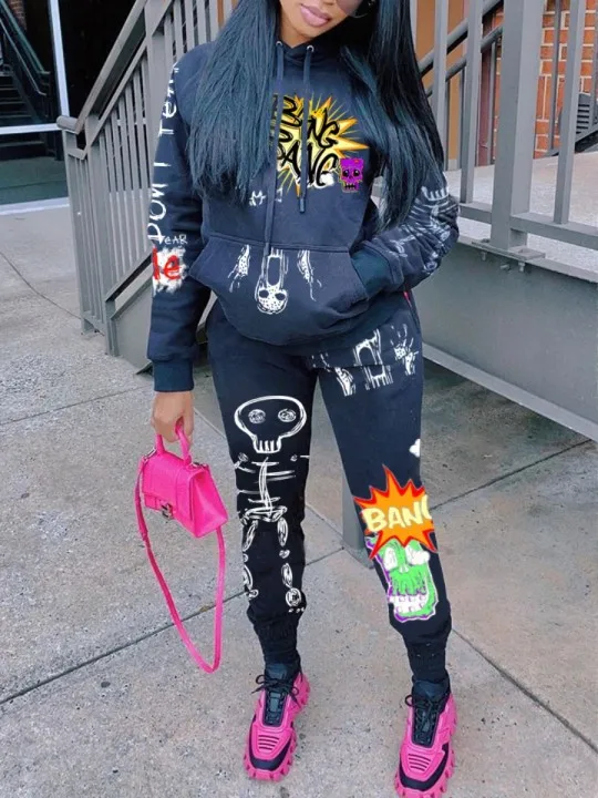 Комплект из двух предметов для женщин модные брюки с принтом в виде граффити с передним карманом, Детские кофты с капюшоном и штаны, костюм на осень и зиму новая уличная Стиль одежда для досуга
