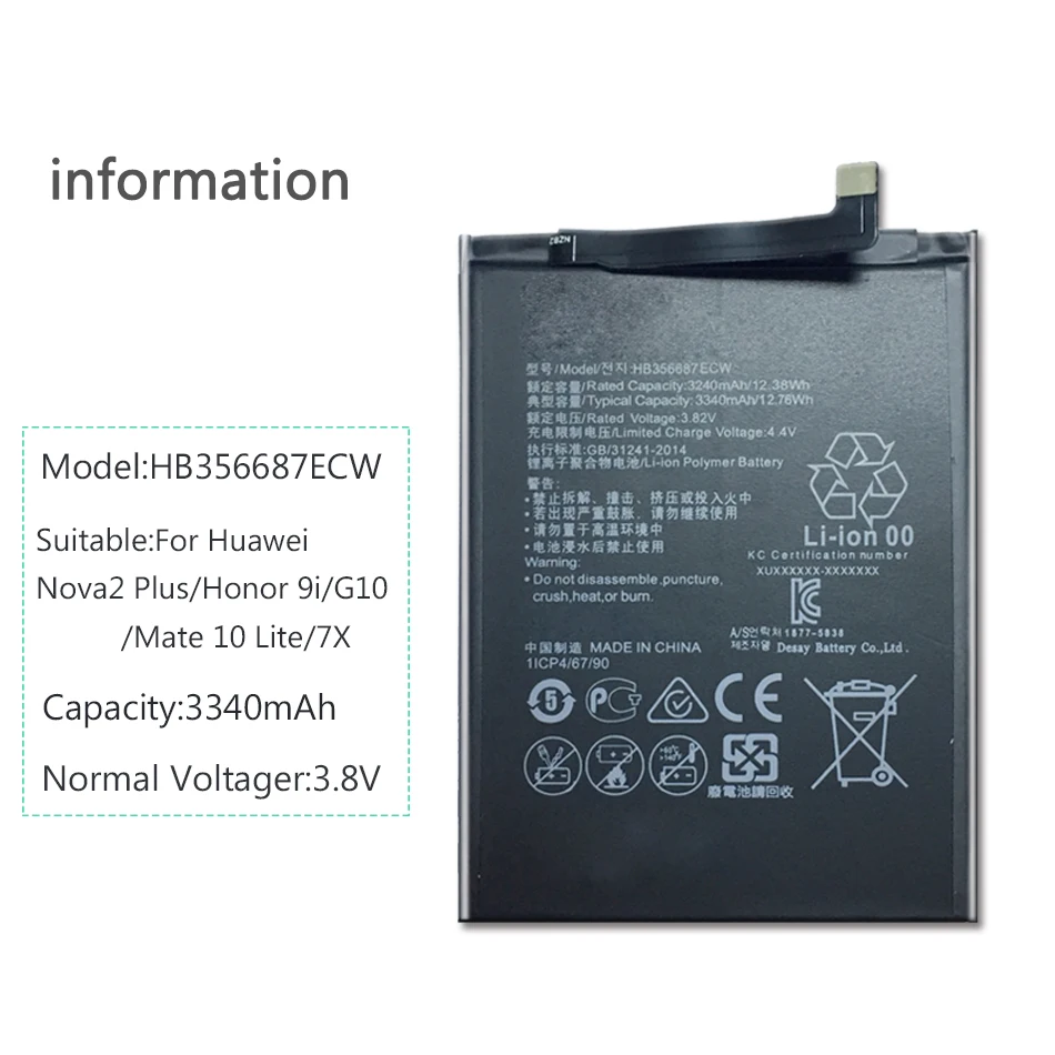 HB366481ECW 4800mAh For Huawei P10 Lite G10,WAS-TL10/ P20 Lite