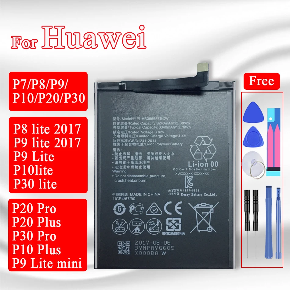 HB356687ECW HB366481ECW батарея для Huawei P7 P8 P9 P10 P20 P30 Lite 2017 P10 P20 Plus P20 P30 Pro P9 Lite mini batteria batterij + Инструменты