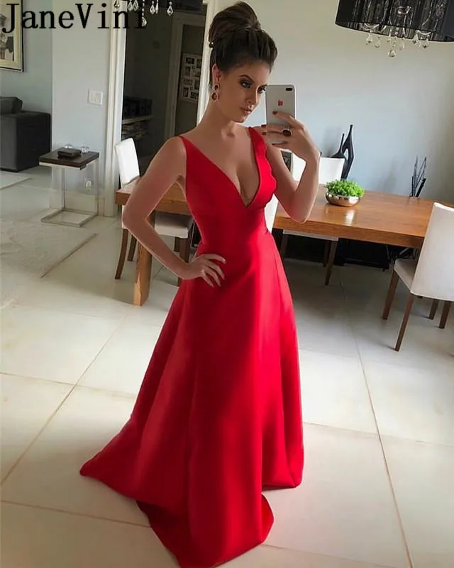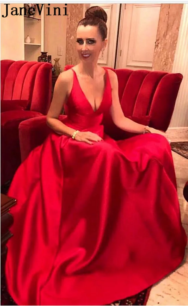Женское атласное платье JaneVini, элегантное красное платье с v-образным вырезом, длинное вечернее платье для выпускного вечера