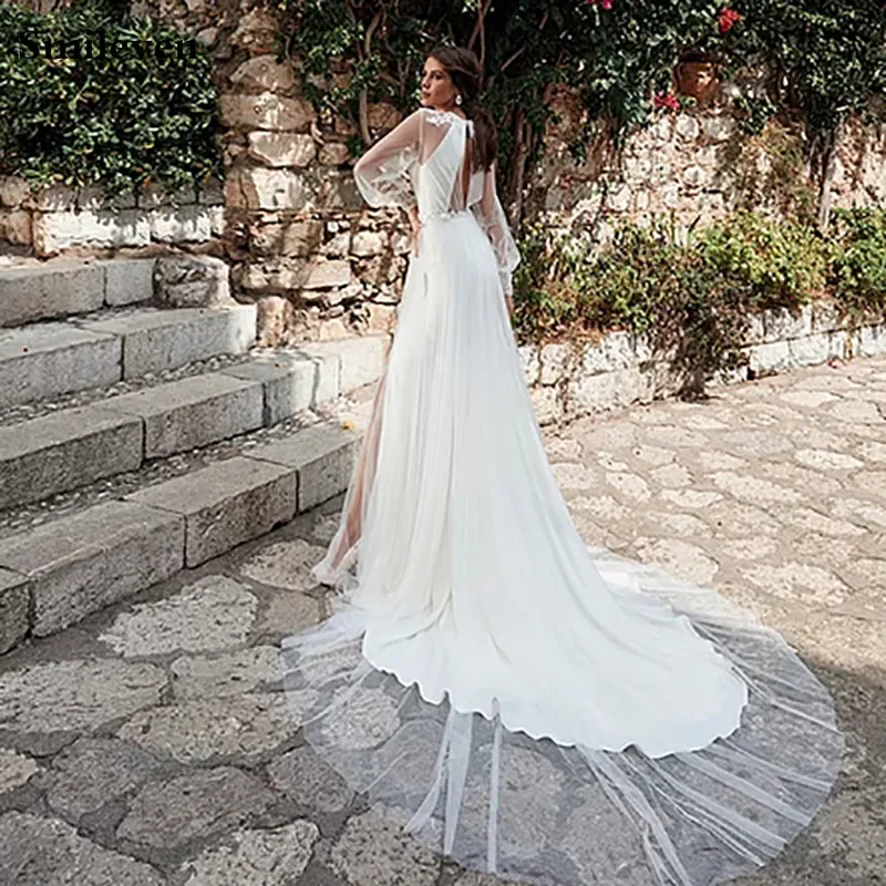 Smileven2 предмета, свадебное платье русалки, 2020, платье невесты с глубоким вырезом и разрезом по бокам, Vestido De Noiva, кружевные свадебные платья в богемном стиле