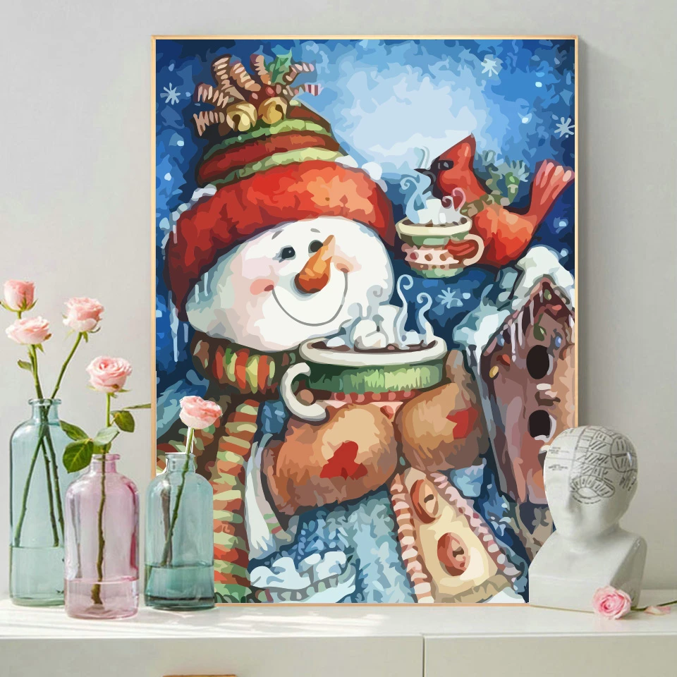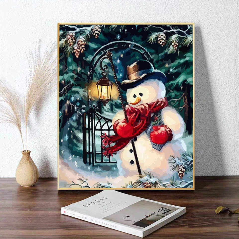 AZQSD масляная краска для рисования по номерам снеговик Diy Краска по номерам для взрослых Зимний домашний декор художественные наборы Рисование холст 50x40 см без рамки
