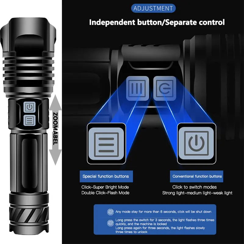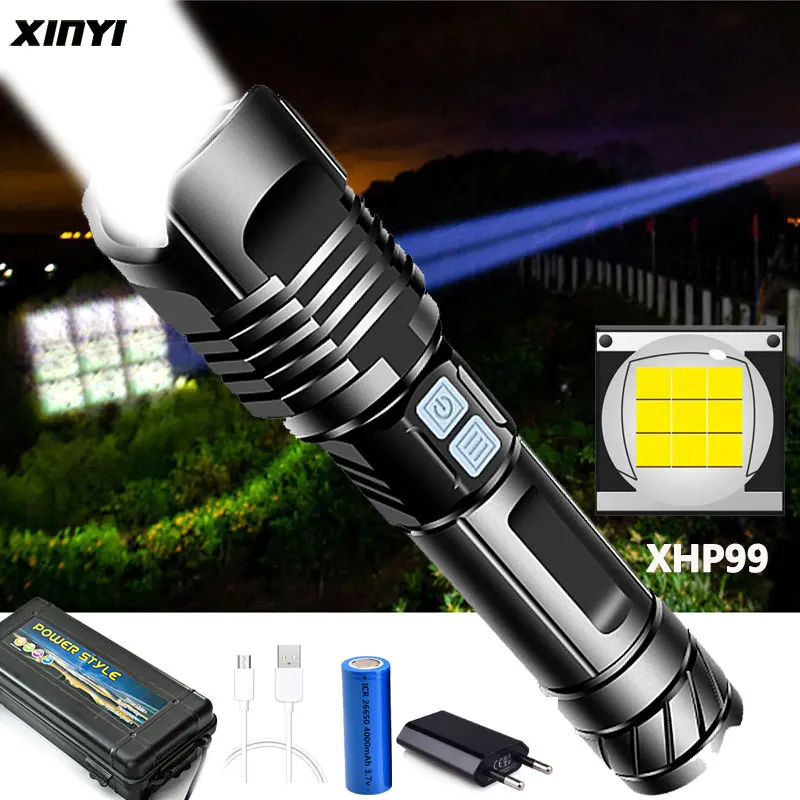 Супермощный светодиодный фонарик XHP100, перезаряжаемый от USB светодиодный фонарик XHP90, тактический фонарь XHP50, ручная лампа 26650, фонарик