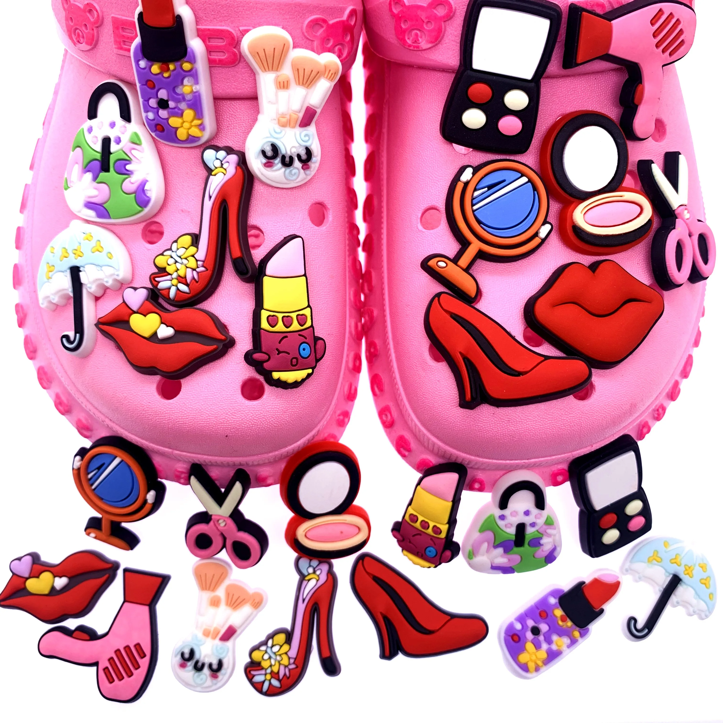 Оптовая продажа, 50 шт., Мультяшные Красные Подвески для обуви, сил...