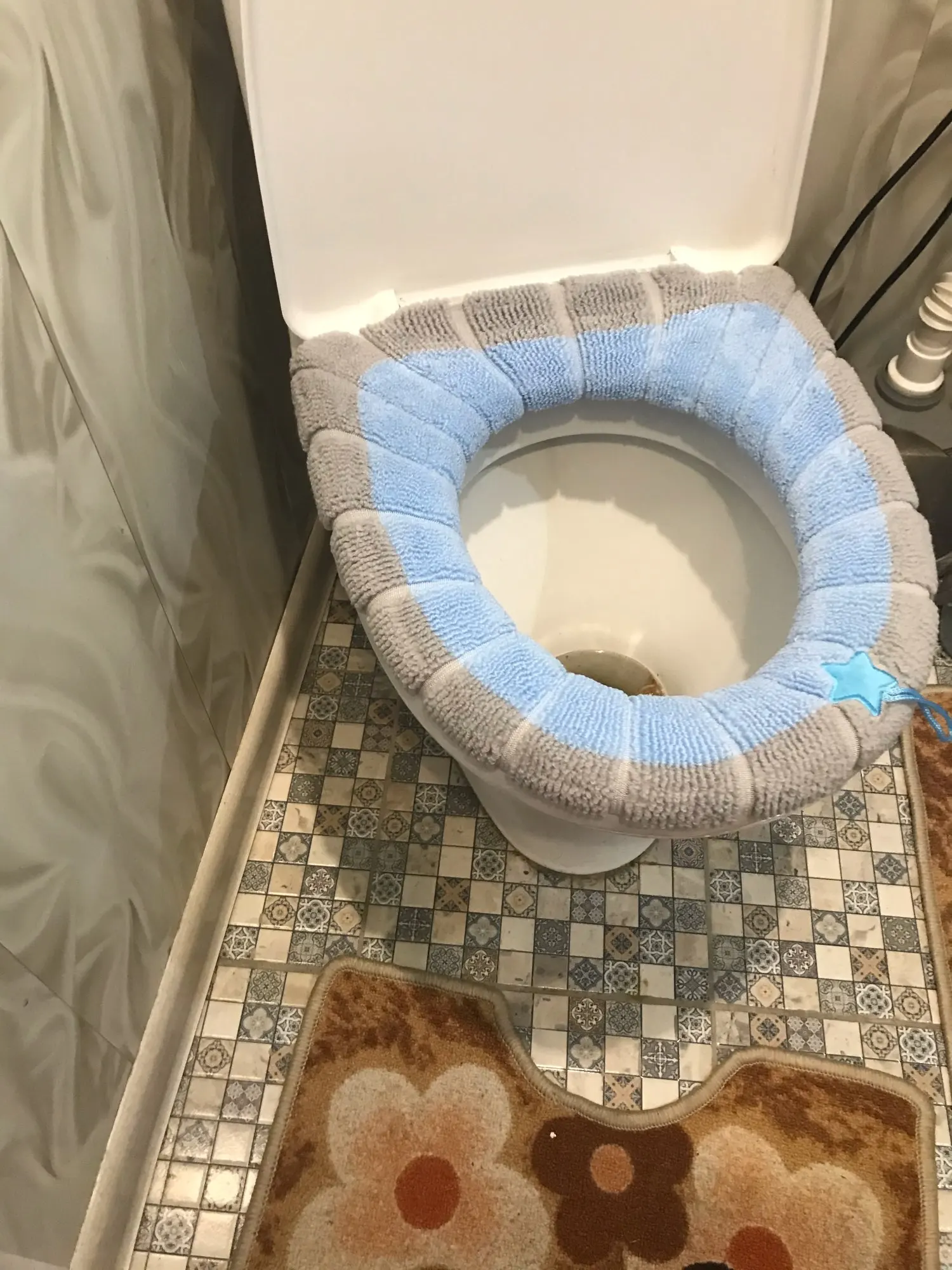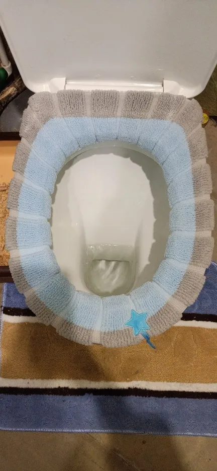 мягкий и теплый чехол для седушки унитаза. Быстро и удобно снимать и одевать.